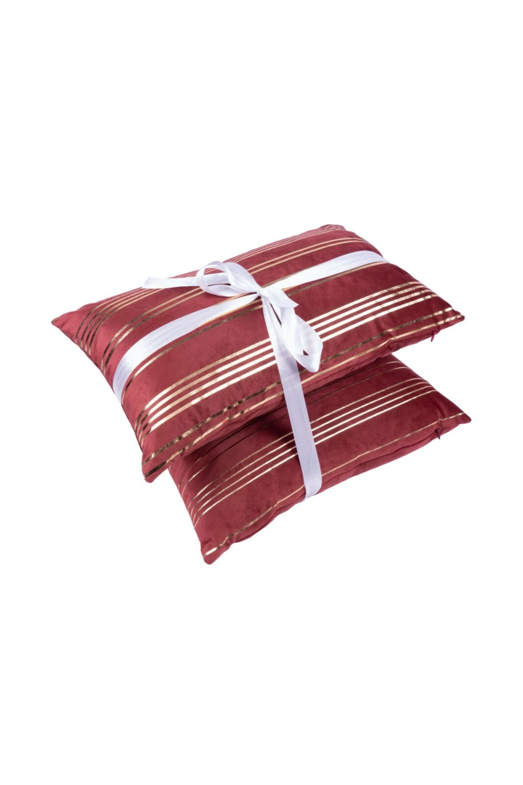 2er-Set Dekokissen – rot-gold – 30×50 cm – 45×45 cm