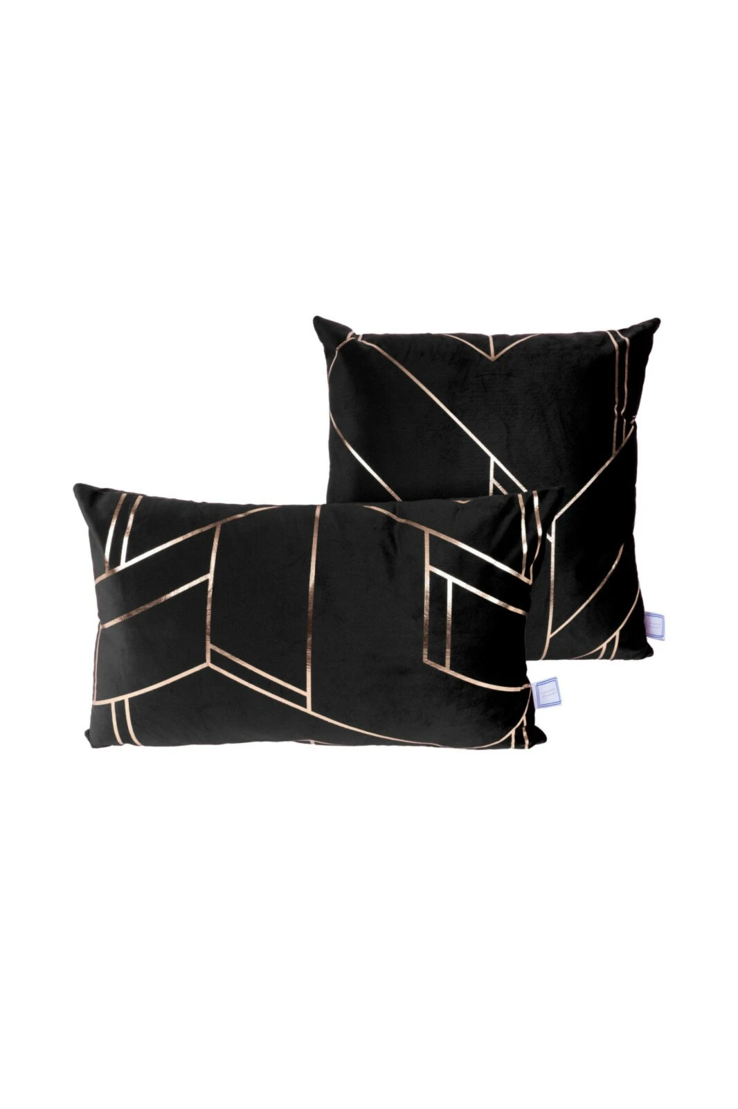 2er-Set Dekokissen – schwarz-gold – 30×50 cm – 45×45 cm