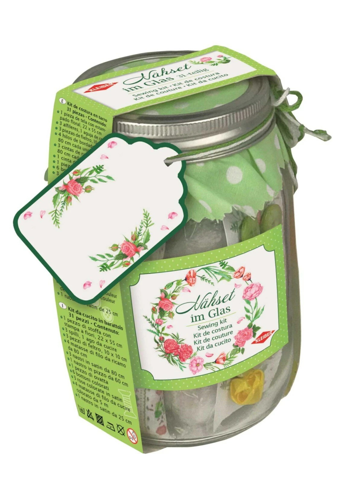 31-teiliges Nähset KLIEBER – grün – im Glas