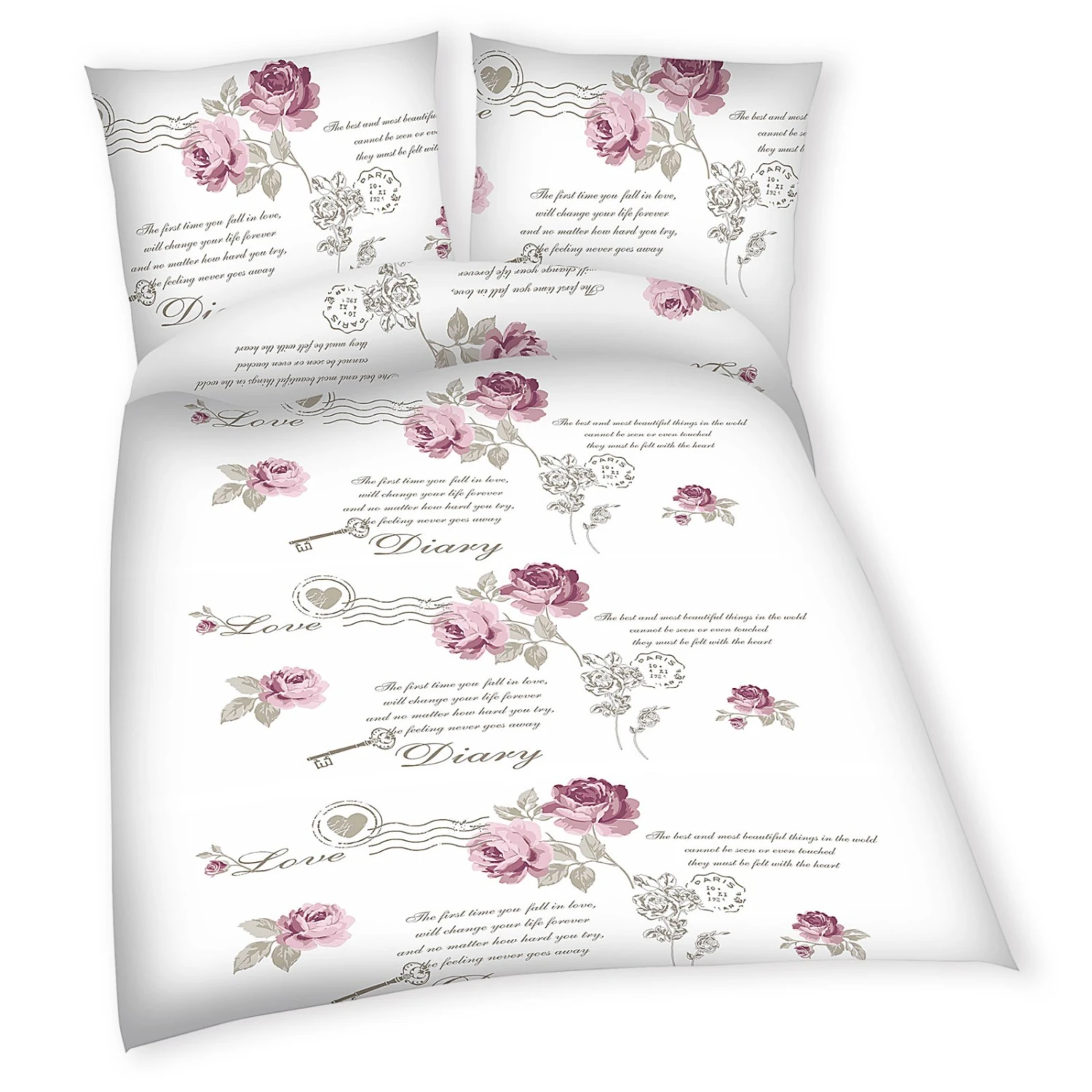 Baumwoll-Bettwäsche mit wunderschönem Rosenmotiv und romantischem Spruch. Ein tolles Highlight für Ihr Schlafzimmer! Dank des Reißverschlusses lässt sich die Bettwäsche ganz einfach be- und abziehen. Das Material aus 100% Baumwolle macht die Bettwäsche kuschelweich und fühlt sich angenehm auf der Haut an.