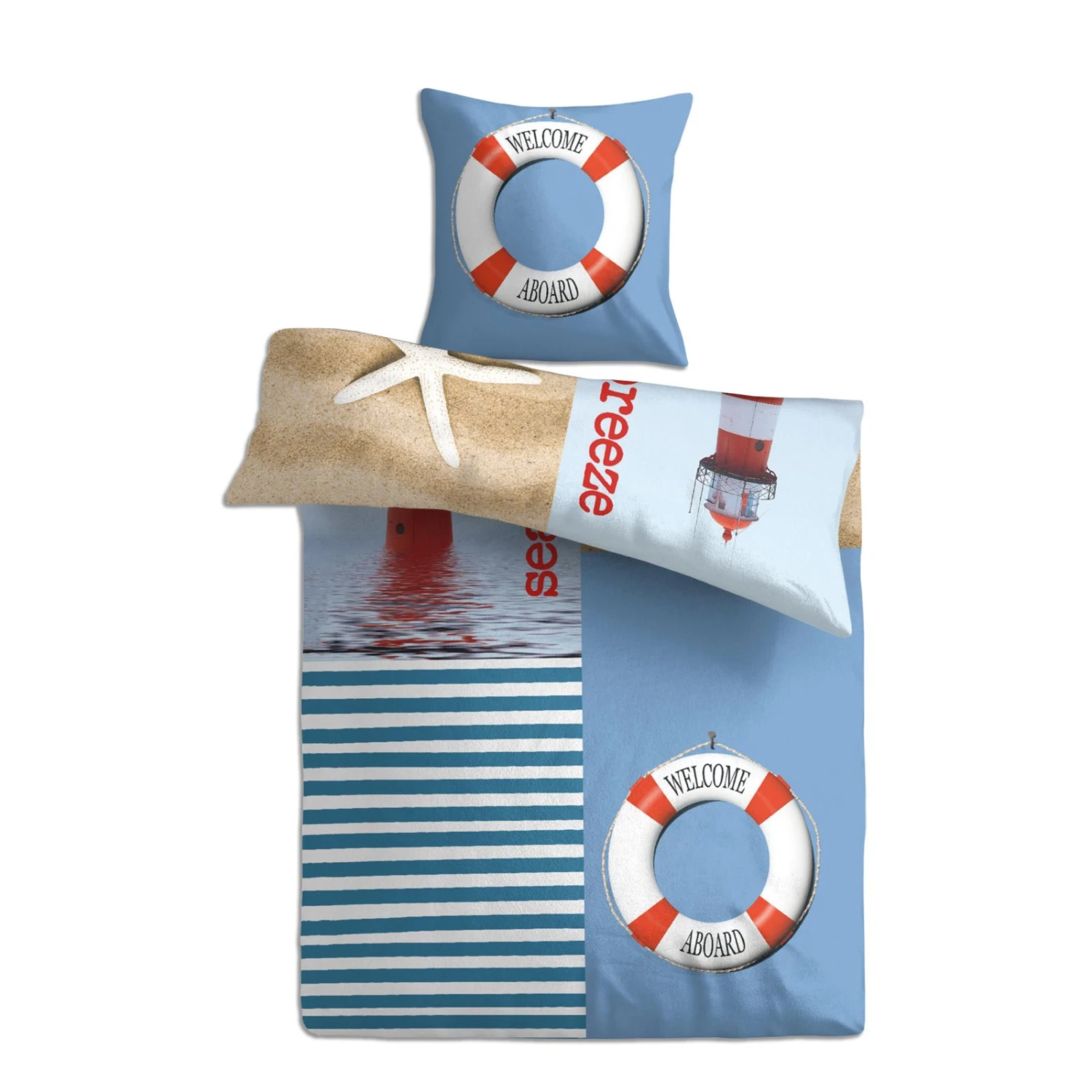Wer die See liebt, liebt auch Leuchttürme und umgekehrt! Lassen Sie sich an Ihren letzten Besuch erinnern und stecken Sie Ihre Füße statt in den Sand unter diese kuschelig weiche Baumwoll-Bettwäsche! Der Kissenbezug weit auf jeder Seite einen leicht veränderten Druck. Danke des Reißverschlusses ist alles leicht auf- und abgezogen.