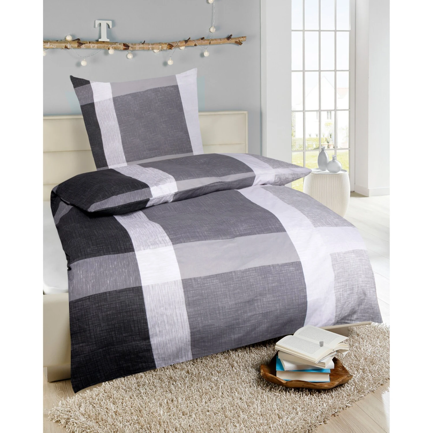 Baumwoll-Bettwäsche – silber-anthrazit – 135×200 cm