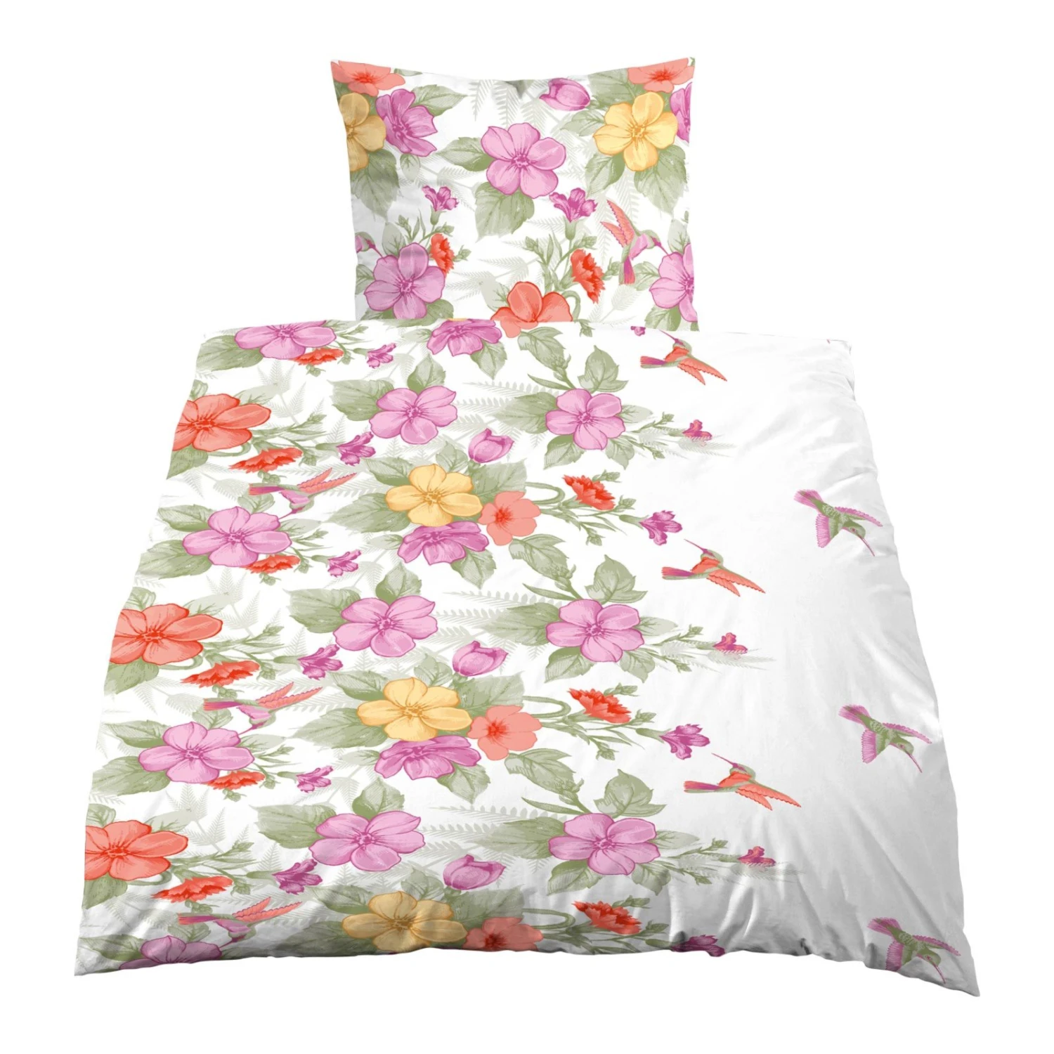 Biber-Bettwäsche – bunt – Blumen – 135×200 cm