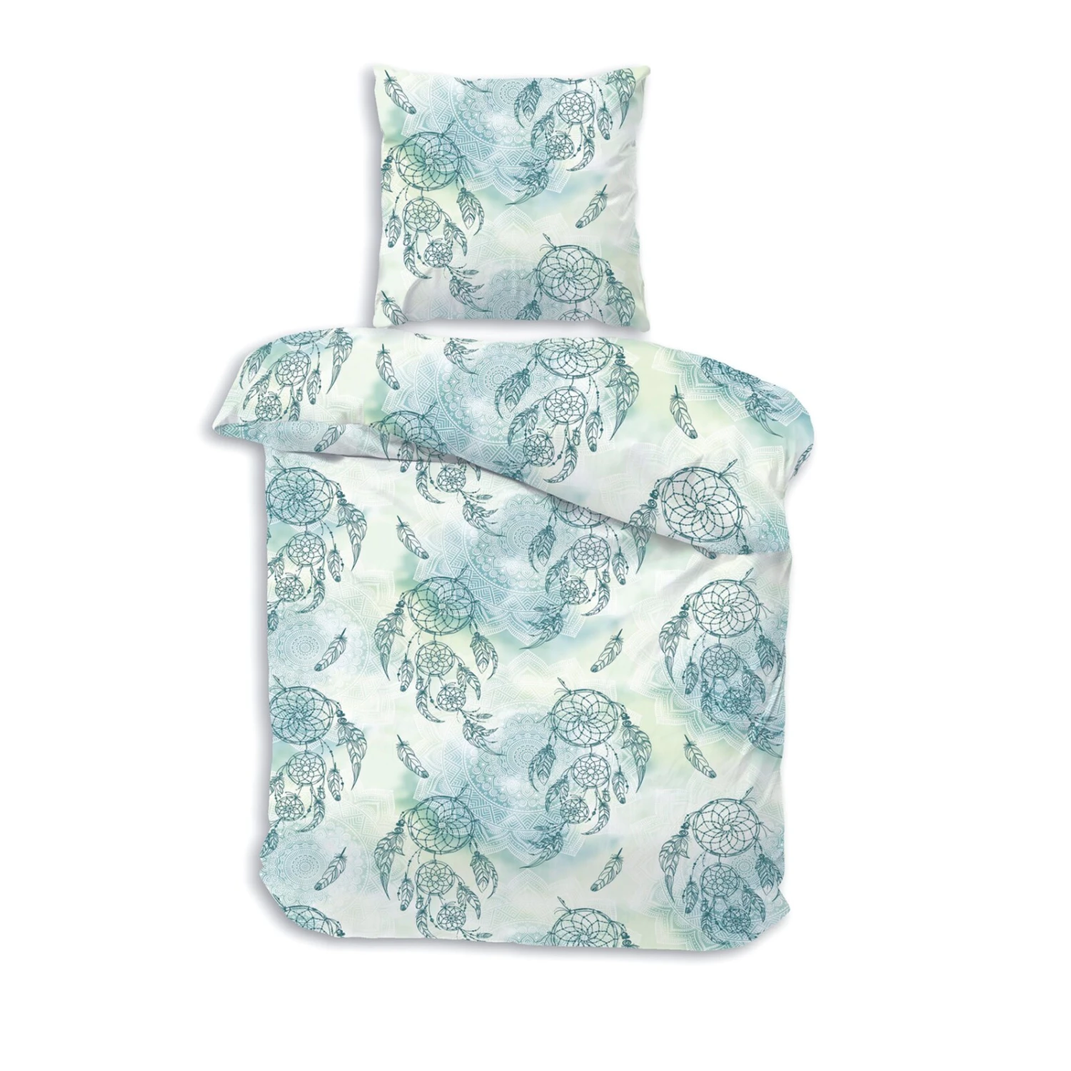 Biber-Bettwäsche – mintgrün-weiß – 135×200 cm