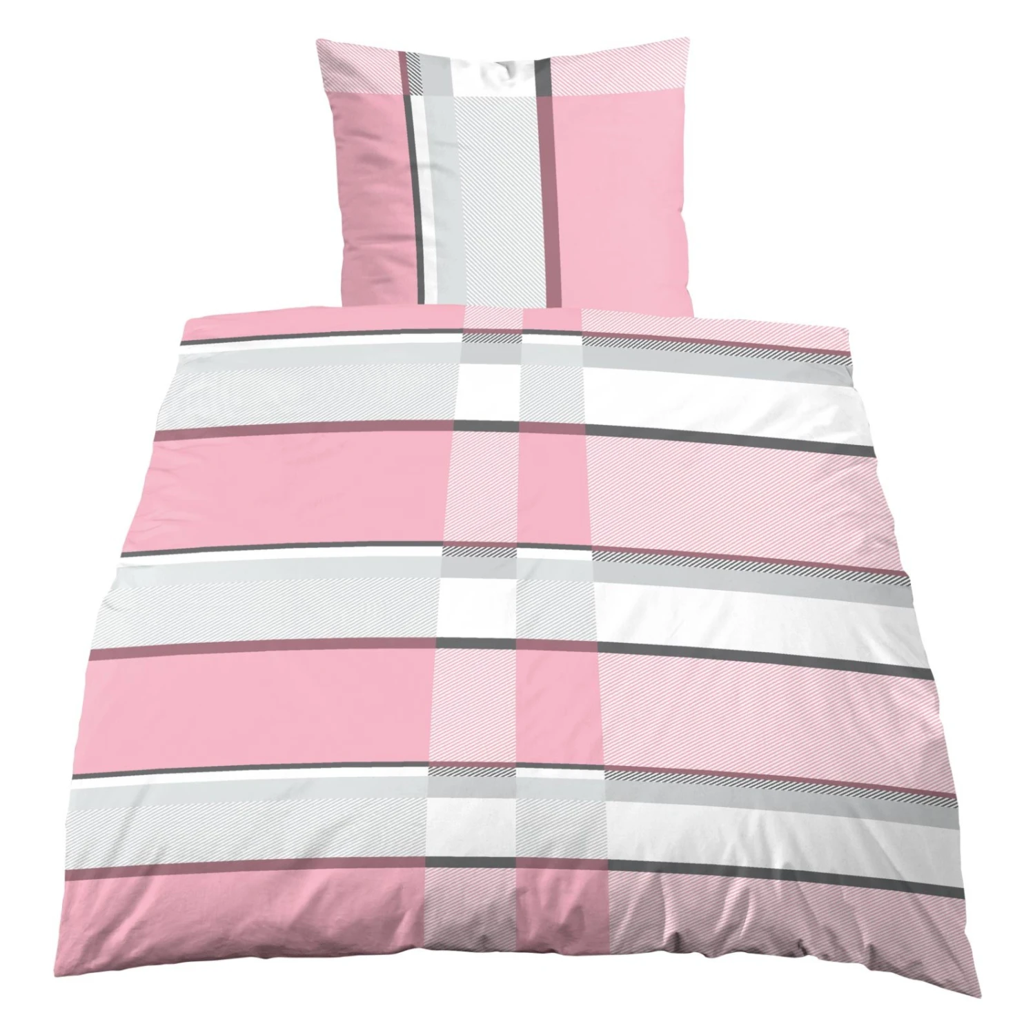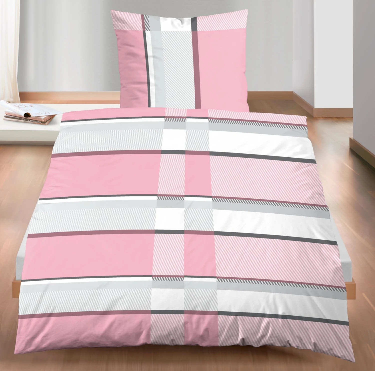 Biber-Bettwäsche – pink-weiß-grau – 135×200 cm