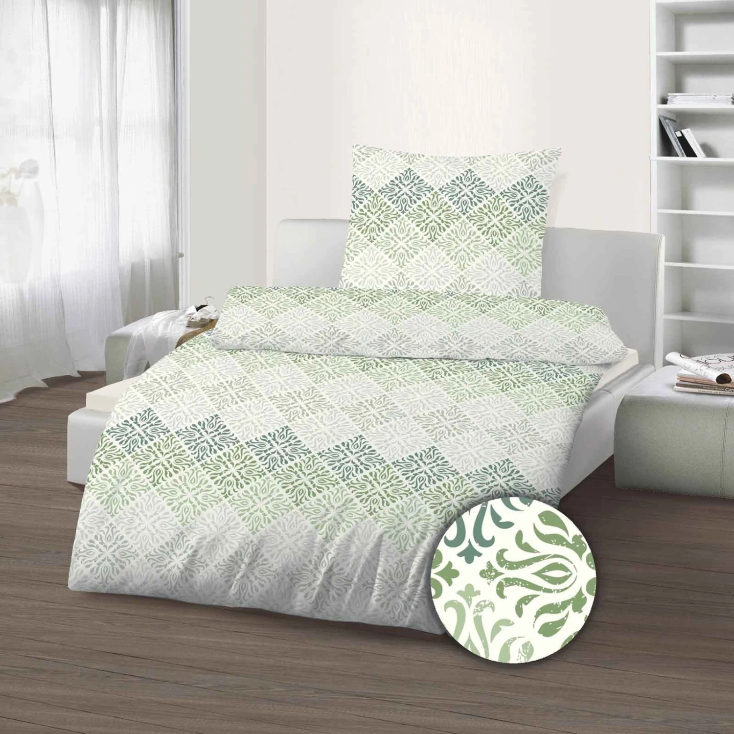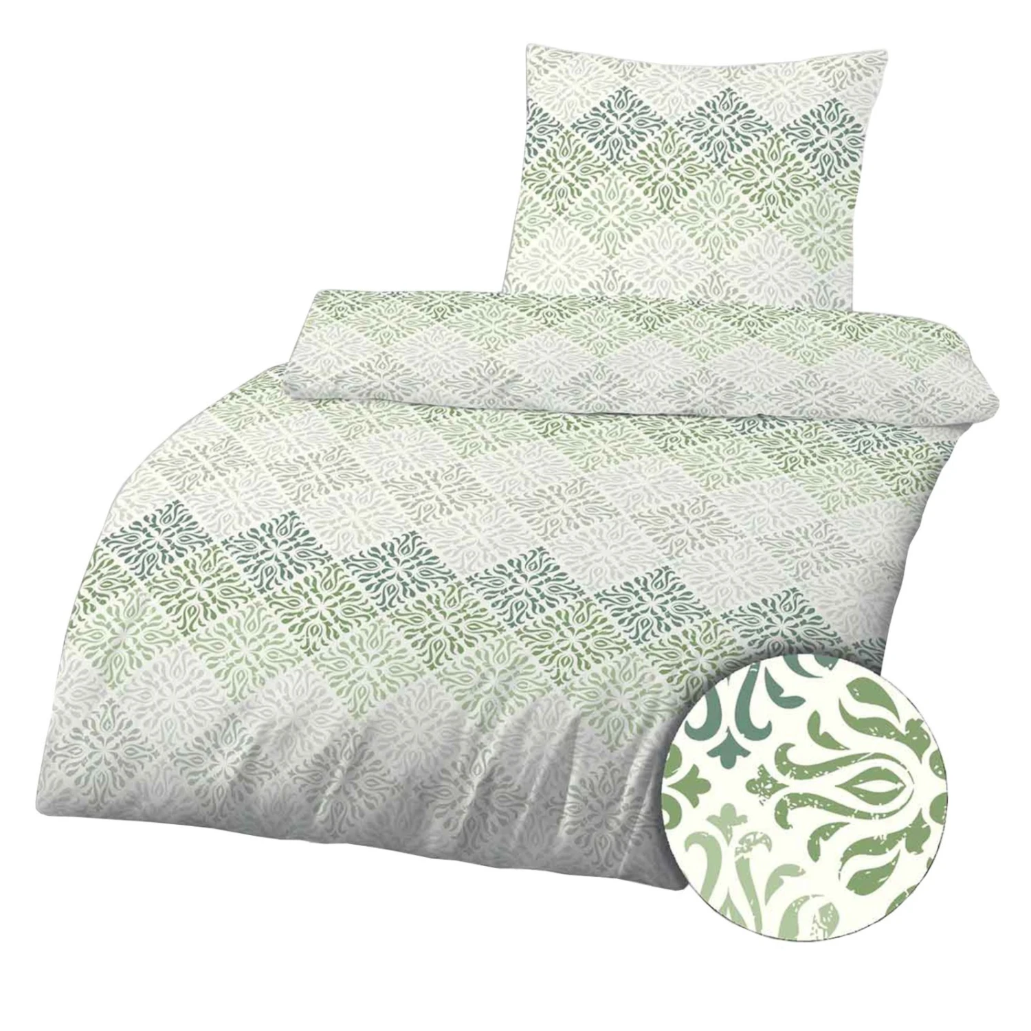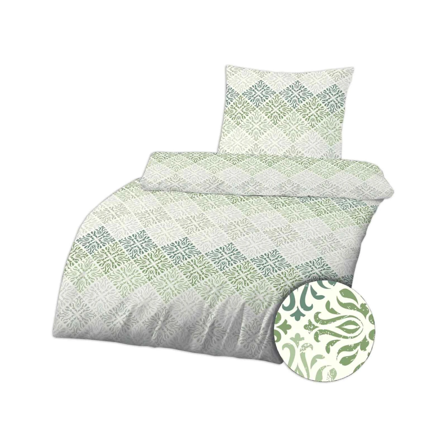 Biber-Bettwäsche – lindgrün-weiß – 135×200 cm