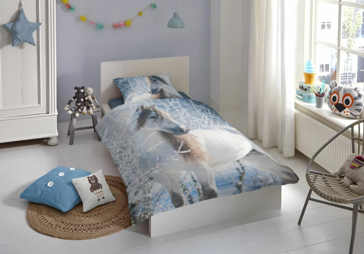 Ein super schönes Motiv, welches diese Bettwäsche ziert. Ein prächtiges Pferd in einer winterlichen Landschaft. Zusätzlich zu der tollen Optik punktet die Bettwäsche durch den Baumwollanteil von 100% und den Reißverschlüssen an den Bezügen, sodass das Be- und Abziehen besonders leicht von der Hand geht.
