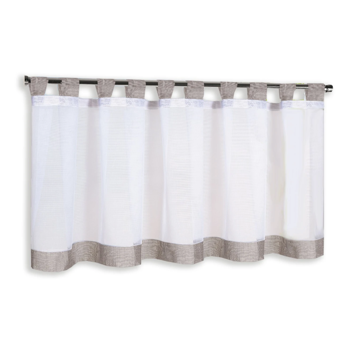 Die Bistrogardine kann sowohl oben als auch am unteren Teil des Fensters angebracht werden. Der Reiz besteht darin, dass die genähten Schlaufen und der untere Abschluß farbig sind, und so einen gelungenen Akzent am Fenster setzen.