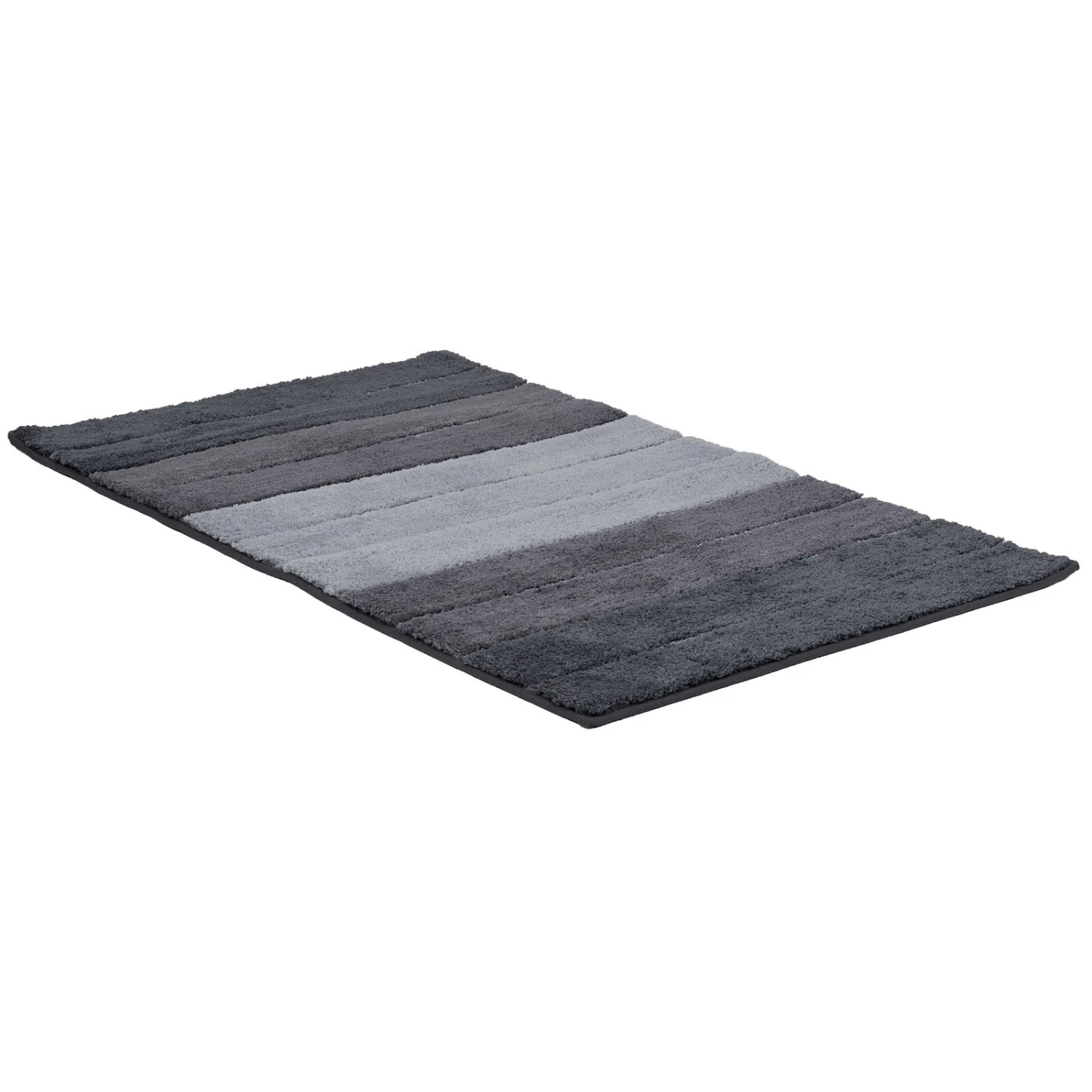 Diese Badmatte in grauem Streifendesign besteht aus Microfaser und verfügt über einen Latexrücken, so dass ein Wegrutschen verhindert wird. Mit ihrer modernen und zugleich schlichten Farbgebung peppt sie jedes Badezimmer optisch auf. Zudem ist sie fusselfrei, pflegeleicht und für Fußbodenheizung geeignet.