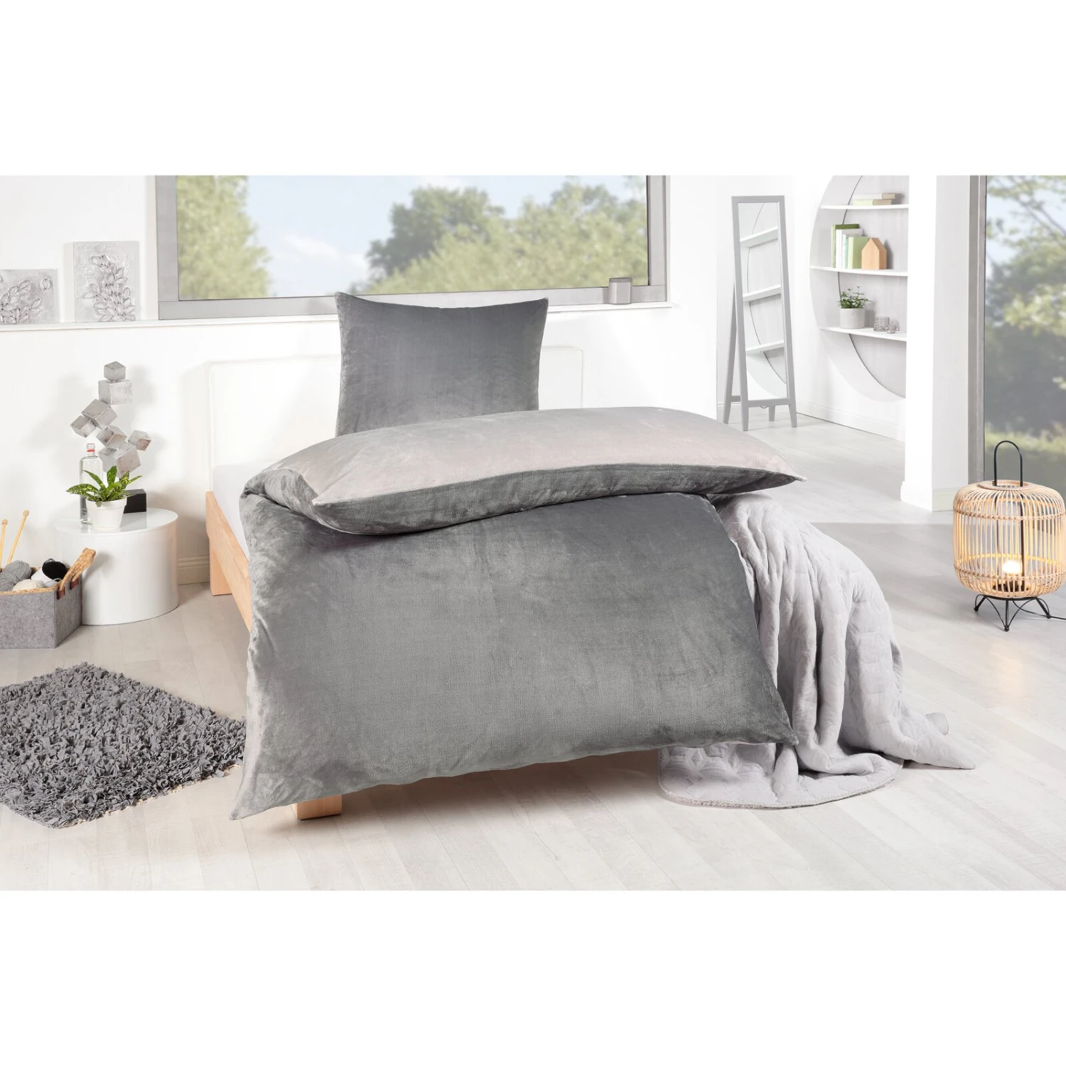 Flanell-Bettwäsche – silber-grau – 135×200 cm