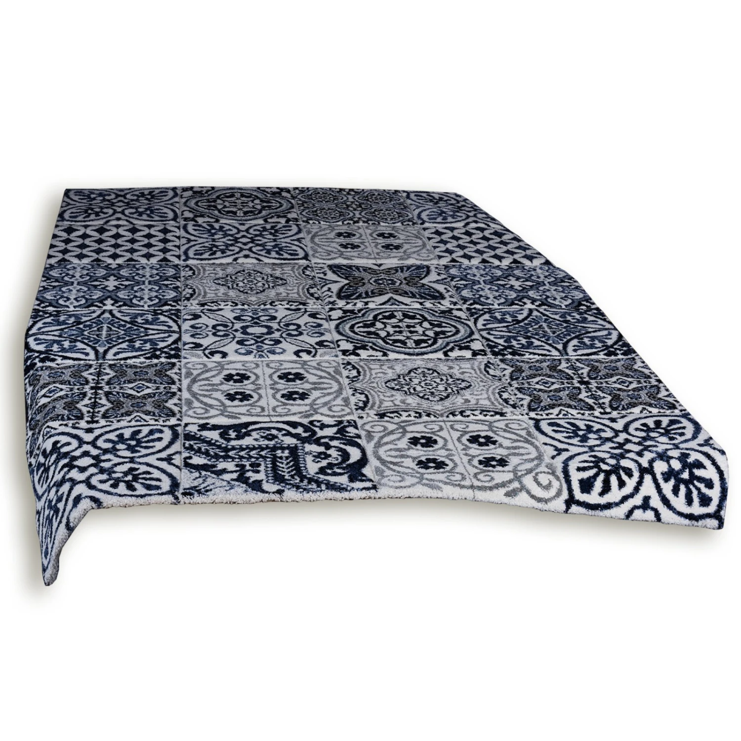 Frisee-Teppich blau-weiß – 80×150 cm – Gemusterter Teppich für stilvolle Räume