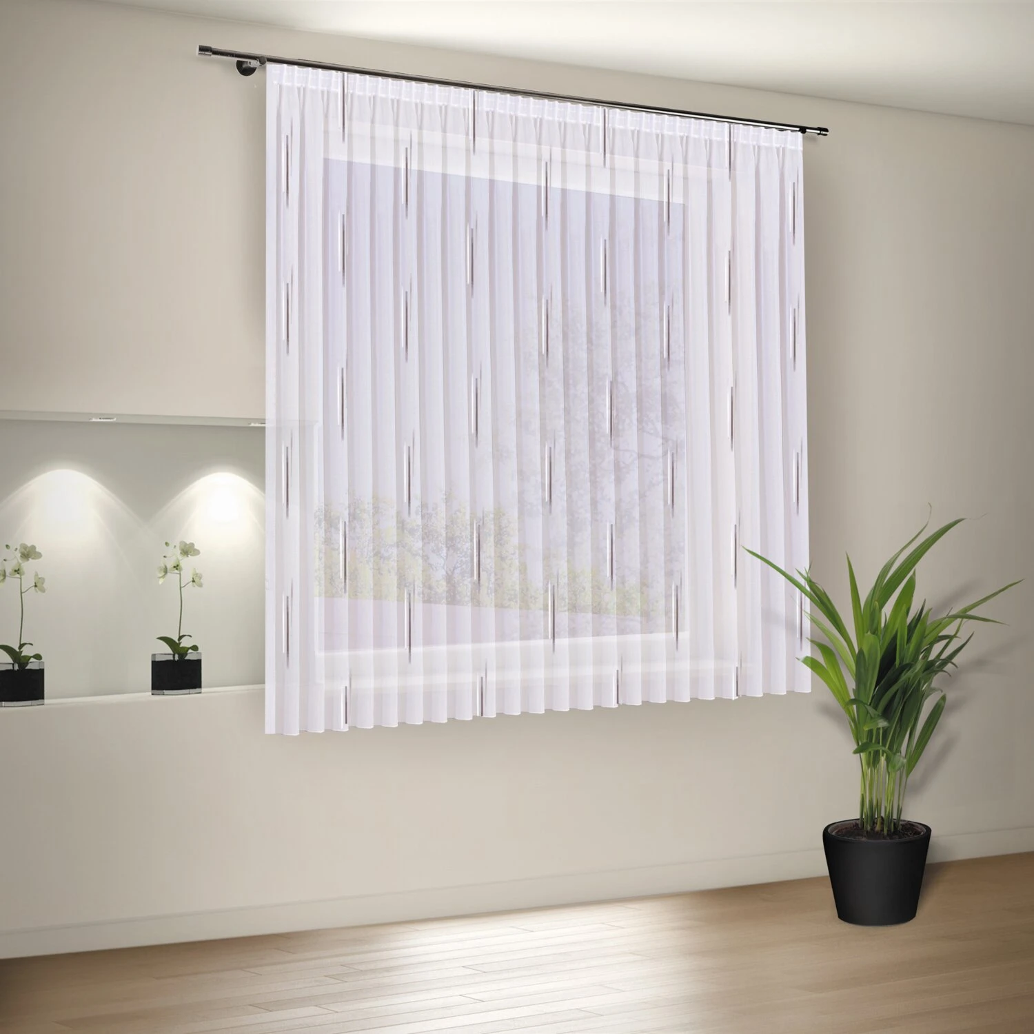 Gardine – weiß-anthrazit – 200×175 cm