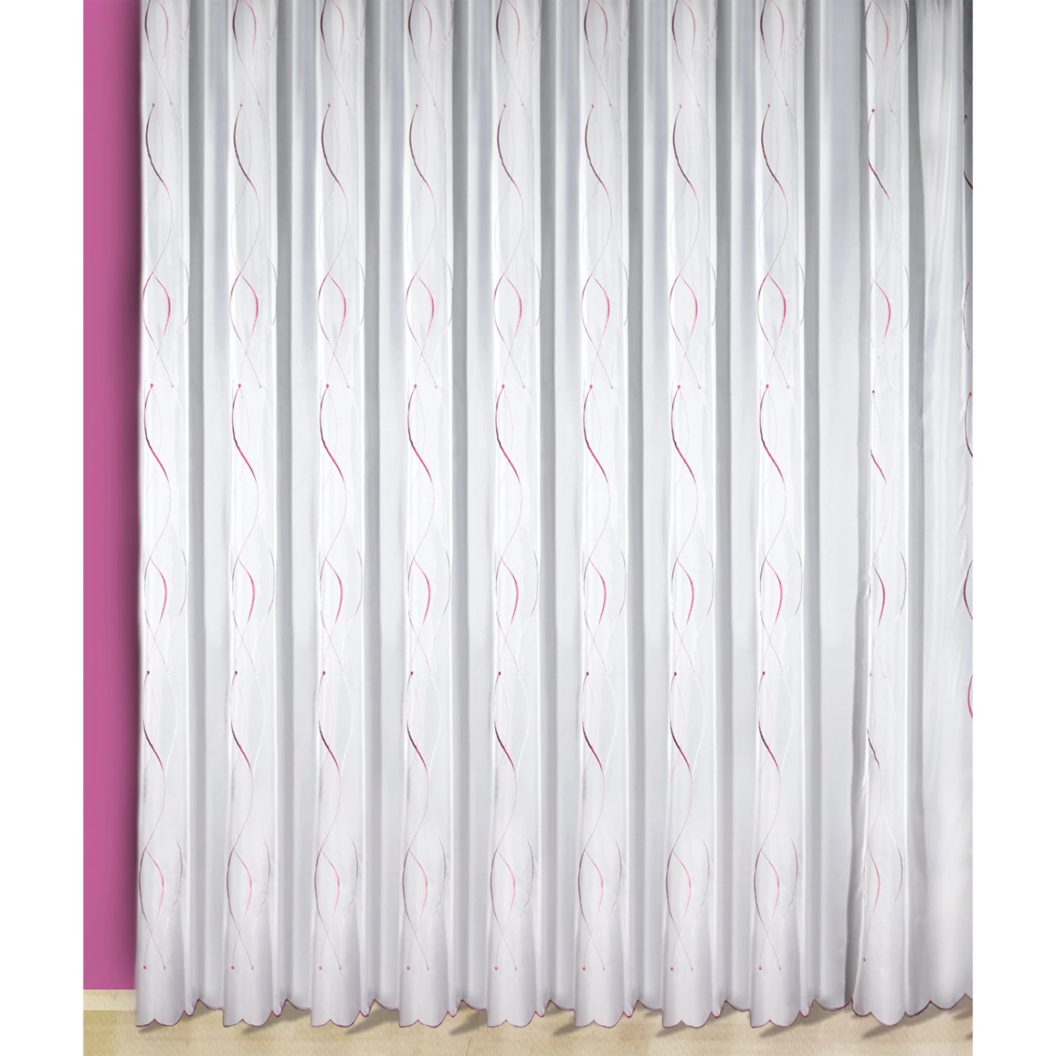 Gardine – weiß-fuchsia – Stick-Store – 245×300 cm