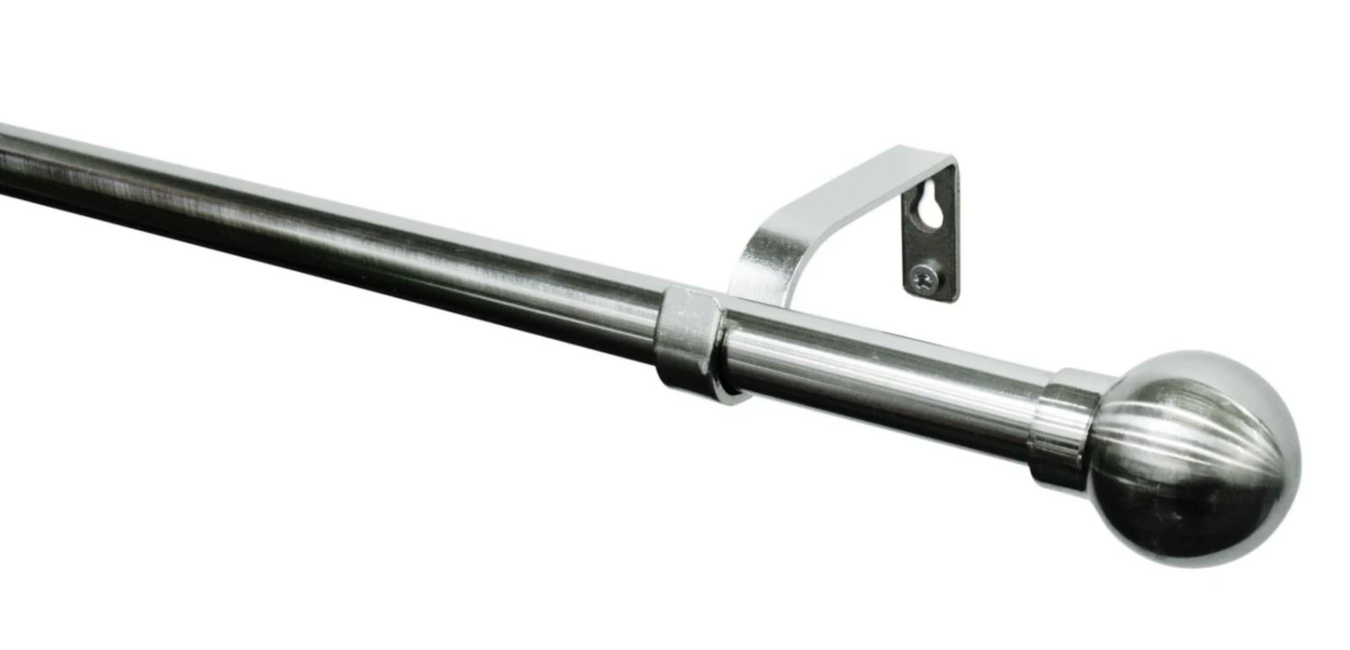 Das komplette Set enthält eine Stange, die passenden Metall-Endknöpfe, dieTräger, die Ringe, die Faltenlegehaken und das Befestigungsmaterial. Die Gardinen-Stange in Edelstahl-Optik verleiht Ihrem Fenster die besondere Note.