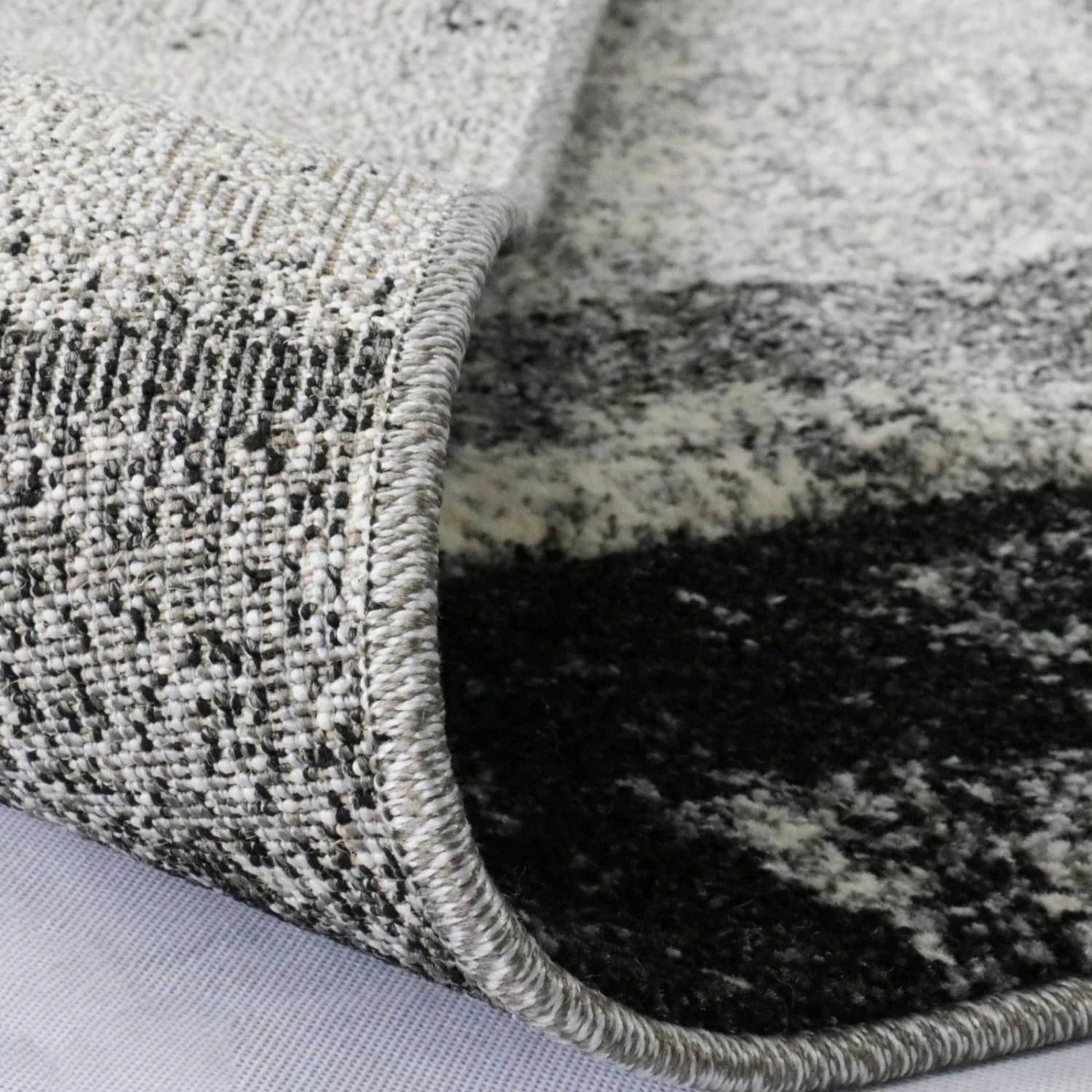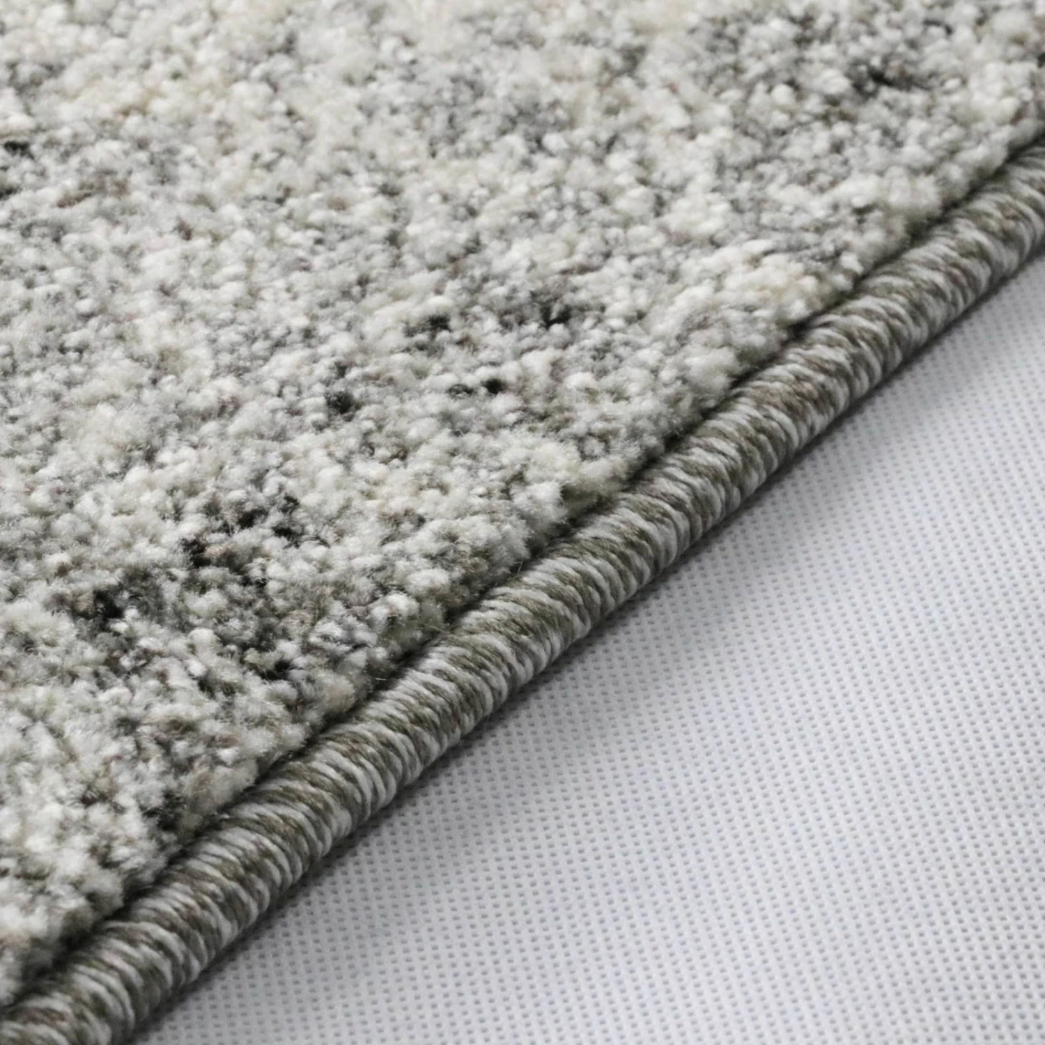 In Grau und Schwarz gehalten präsentiert sich der Teppich ganz dezent. Auch das grafische Muster ist zart gestaltet und nicht überladen. Lassen Sie mit diesem Teppich die Gemptlichkeit eiziehen. Er ist durch sein dichtes Flor sehr weich und angenehm auf der Haut. Außerdem ist er besonders stark beanspruchbar und pflegeleicht. Der maschinengewebte Teppich ist am rand abgekettelt, sodass dieser nicht ausfranst.