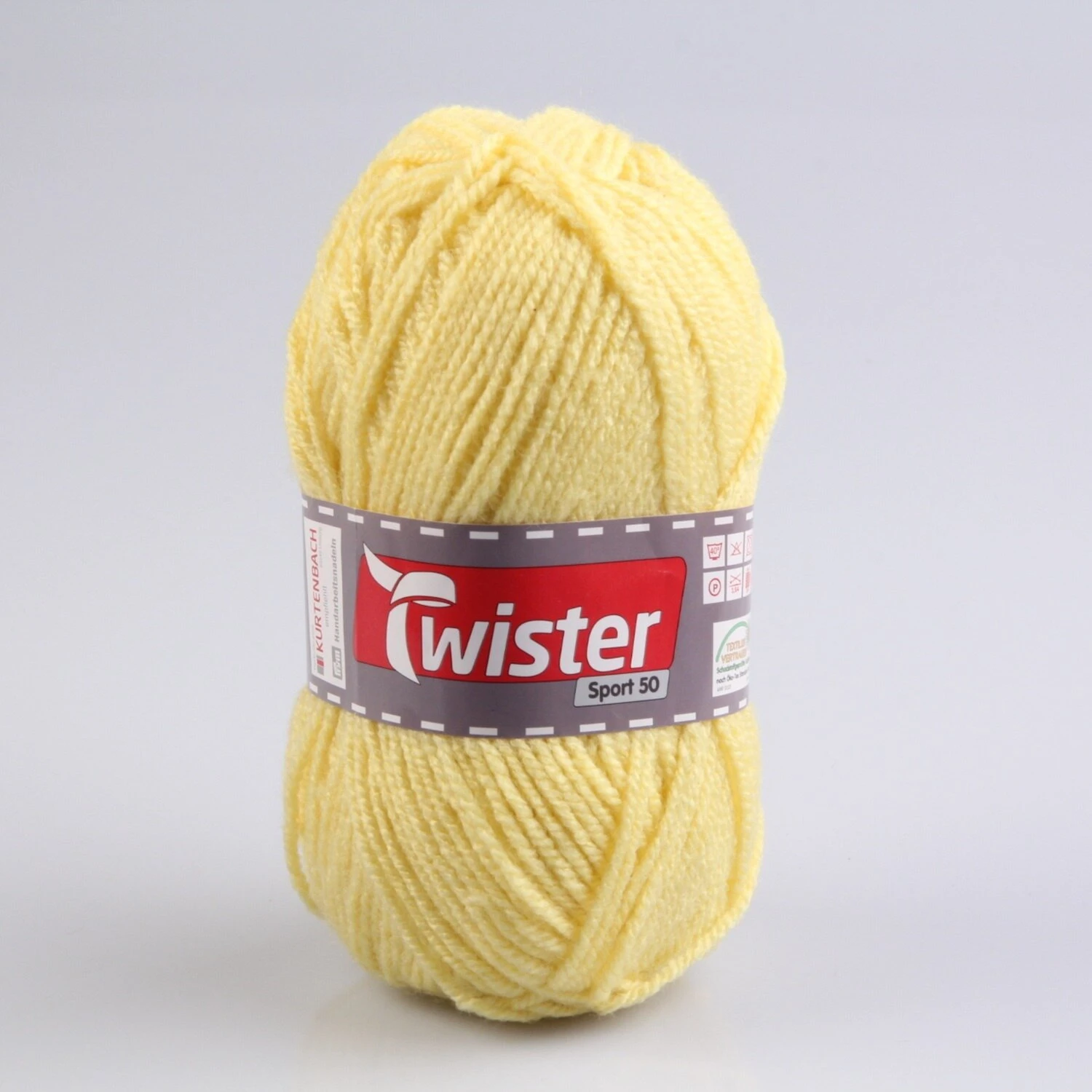 - Das Häkelgarn TWISTER SPORT in der Farbe Zitrone ist ideal für alle, die ihre Häkelprojekte mit frischen Farben gestalten möchten. Mit 50g pro Knäuel bietet es genug Material für kreative Ideen.