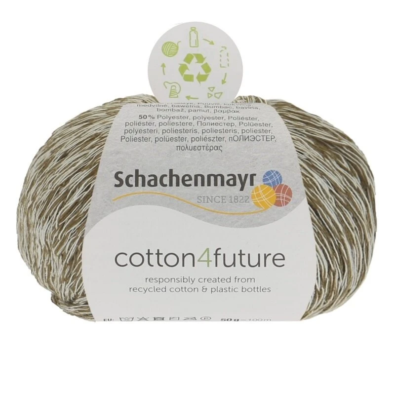 Cotton 4future ist ein Baumwoll-Polyestergarn, mit dem Sie einen großen Schritt in Richtung einer besseren Umwelt gehen. Das Garn in Avocado wird aus recycelter Baumwolle und recyceltem Polyester hergestellt. Die recyelte Baumwolle stammt aus Resten der Textilproduktion und das recycelte Polyester stammt aus recycelten Plastikflaschen. Genießen und erleben Sie Ihre verantwortungsvolle Kreativität.