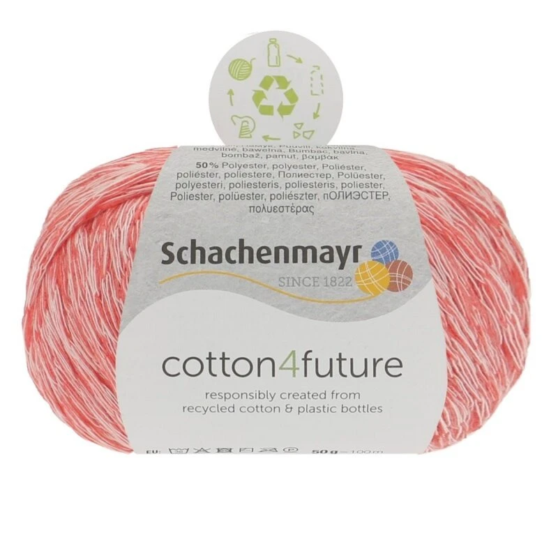 Dieses Cotton 4future Garn ist eine Mischung aus Baumwoll- und Polyestergarn. Das Garn in Poppy wird aus recycelter Baumwolle und recyceltem Polyester hergestellt. Die recycelte Baumwolle stammt aus Resten der Textilproduktion und das recycelte Polyester stammt aus recycelten Plastikflaschen. Genießen und erleben Sie Ihre verantwortungsvolle Kreativität.
