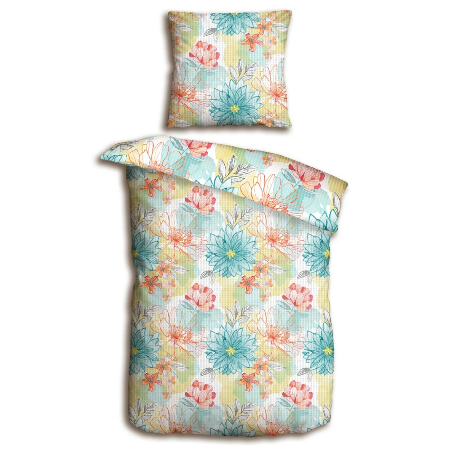 homara Baumwoll-Seersucker-Bettwäsche – aqua-coral – 135×200 cm