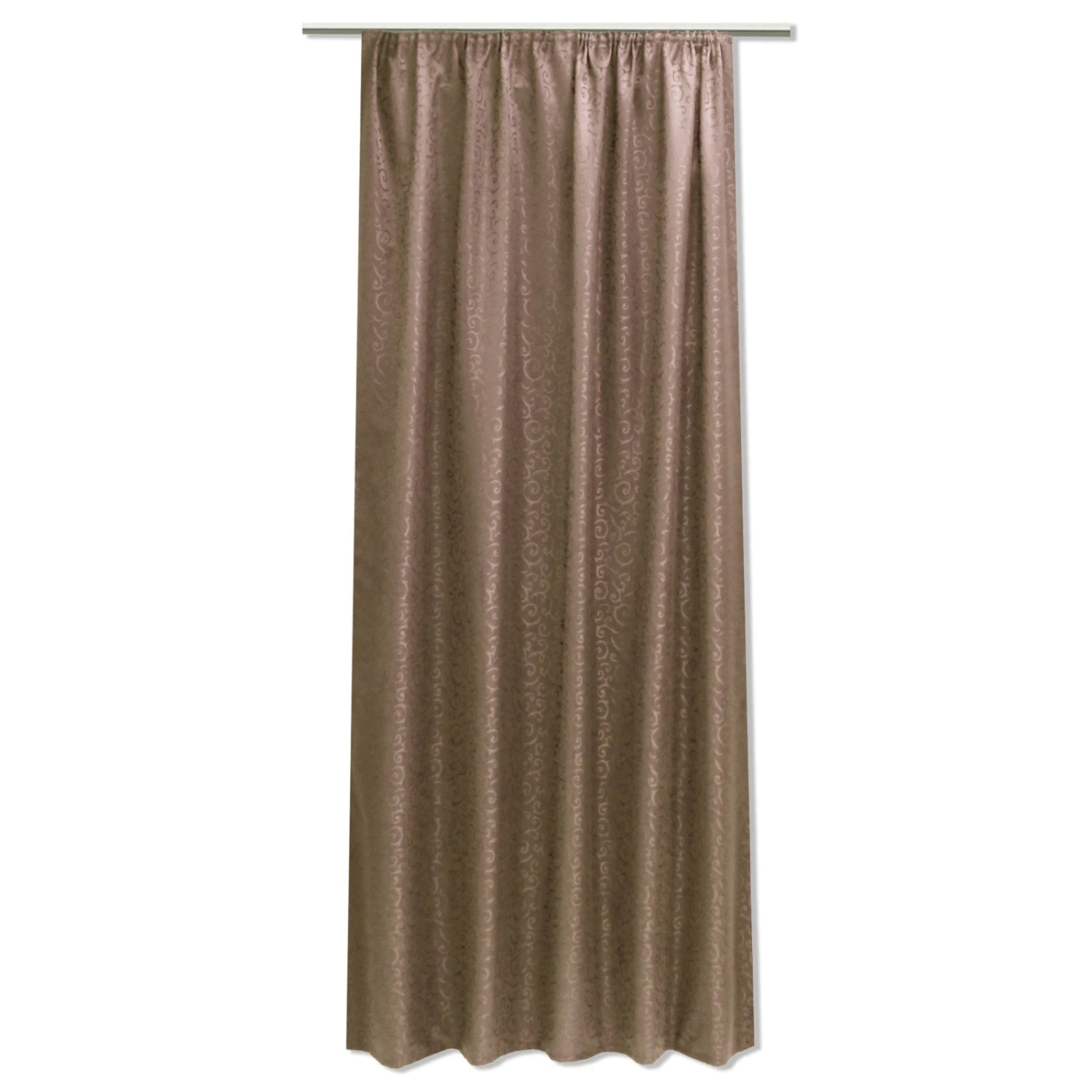 Blickdichter Vorhang im Jacquardmuster mit Gardinenband. Die braune Oberfläche wirkt in Verbindung mit der Musterung sehr dezent und erzeugt so ein tolles Gesamtbild.