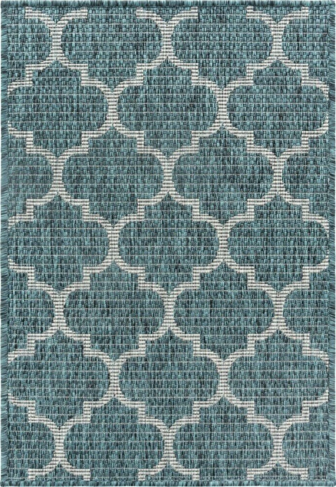 In-/Outdoorteppich CROSSES 1 – blaugrün – 91×61 cm
