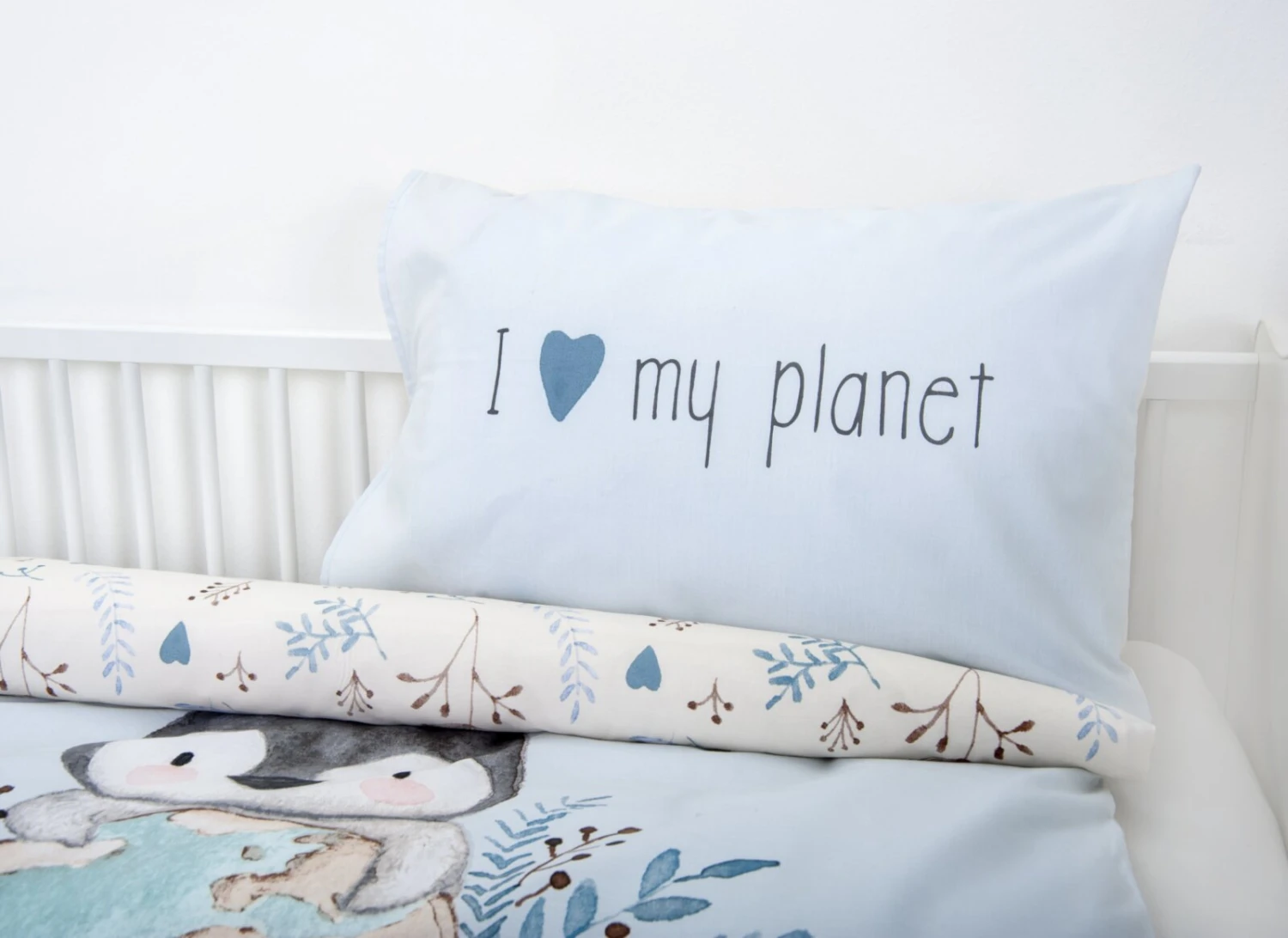 Kinderbettwäsche PINGUIN – hellblau – 100×135 cm