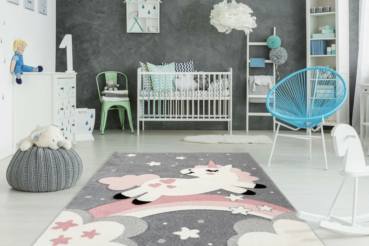 Der attraktive Kinderteppich ist für das Kinderzimmer von heute ideal geeignet. Das verspielte, kindgerechte Motiv und die dezenten Farben eignen sich ideal als Spieluntergrund und lassen Kinderaugen strahlen. Legen Sie den Teppich als weichen Spieluntergrund ins Kinderzimmer und genießen Sie nicht nur seine süße Optik, sondern auch die sichtbare Freude Ihrer Kinder.