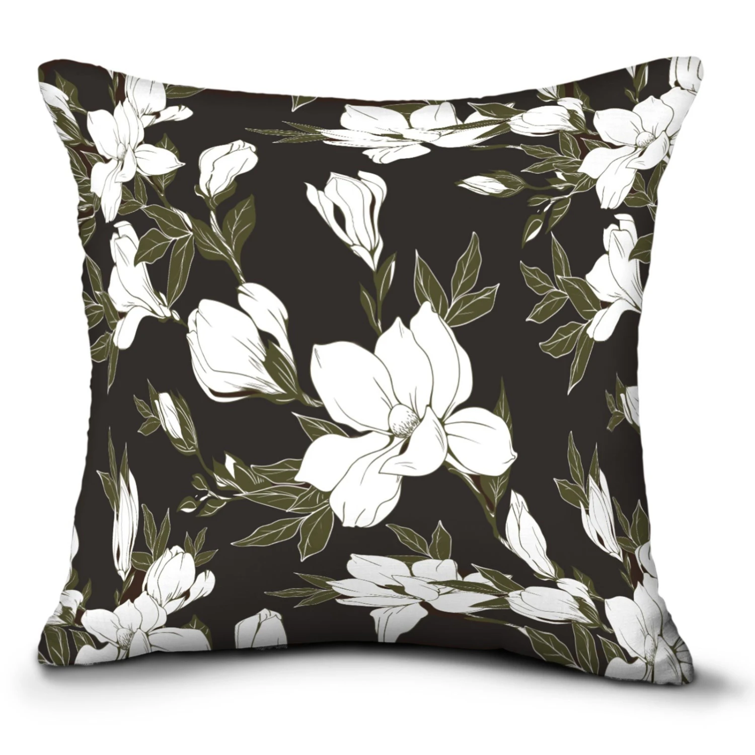 Kissen – schwarz-weiß – Blumen – 45×45 cm