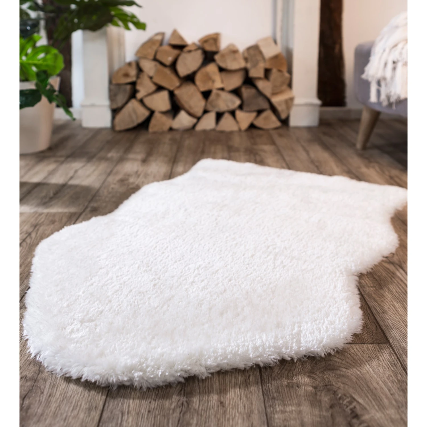 Kunstfell-Teppich – weiß – 55×80 cm | Luxus Dekoteppich für Wohnzimmer & Schlafzimmer