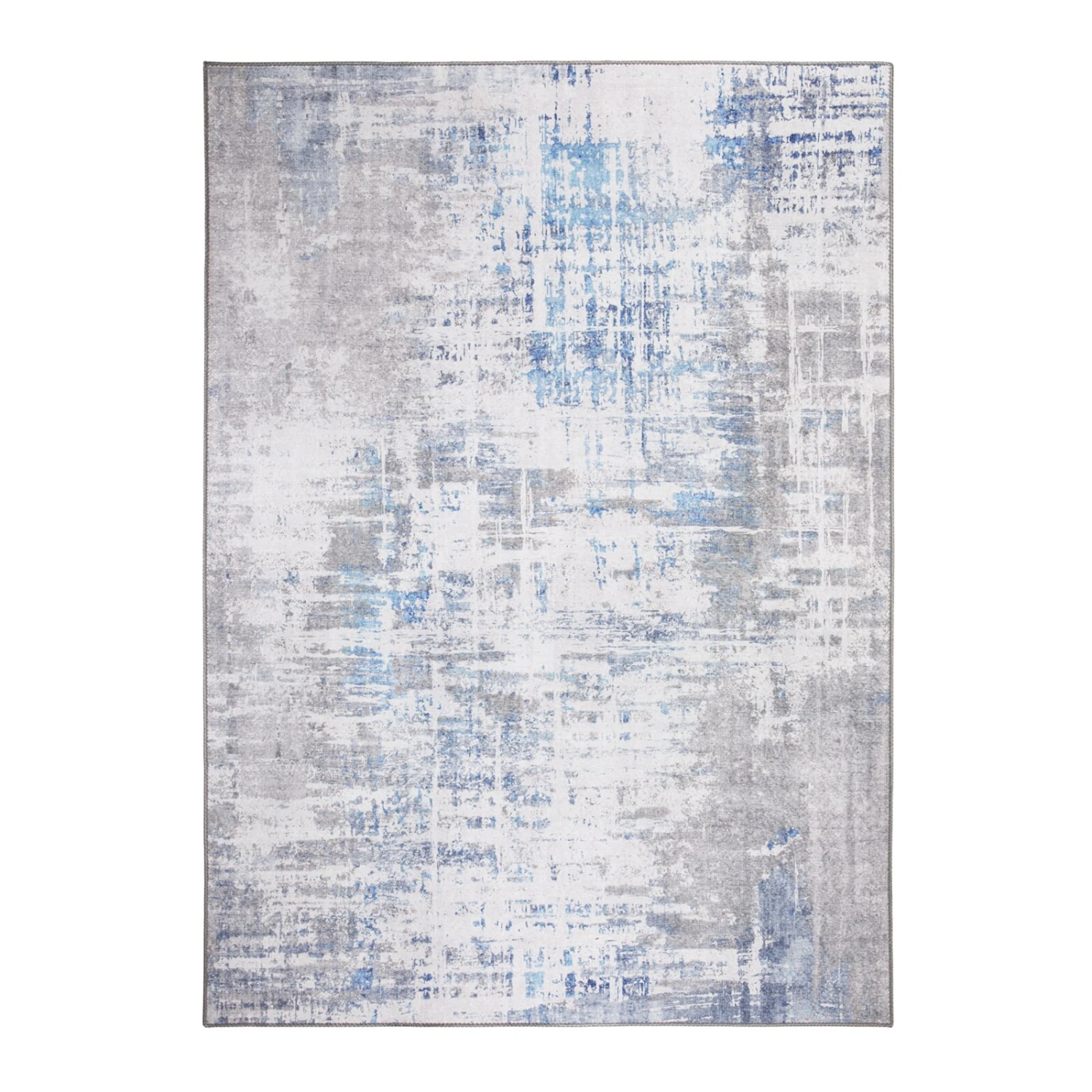 Kurzflorteppich creme-blau 80×150 cm – Moderner Teppich für Wohnzimmer & Schlafzimmer