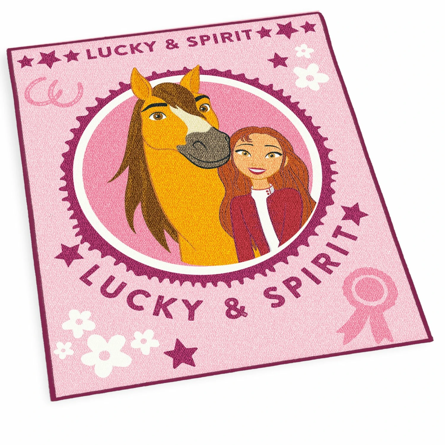 Der Kurzflorteppich im SPIRIT Design ist ideal für alle Fans. Das Motiv mit Lucky und Spirit lässt die Kinder erfreuen.
