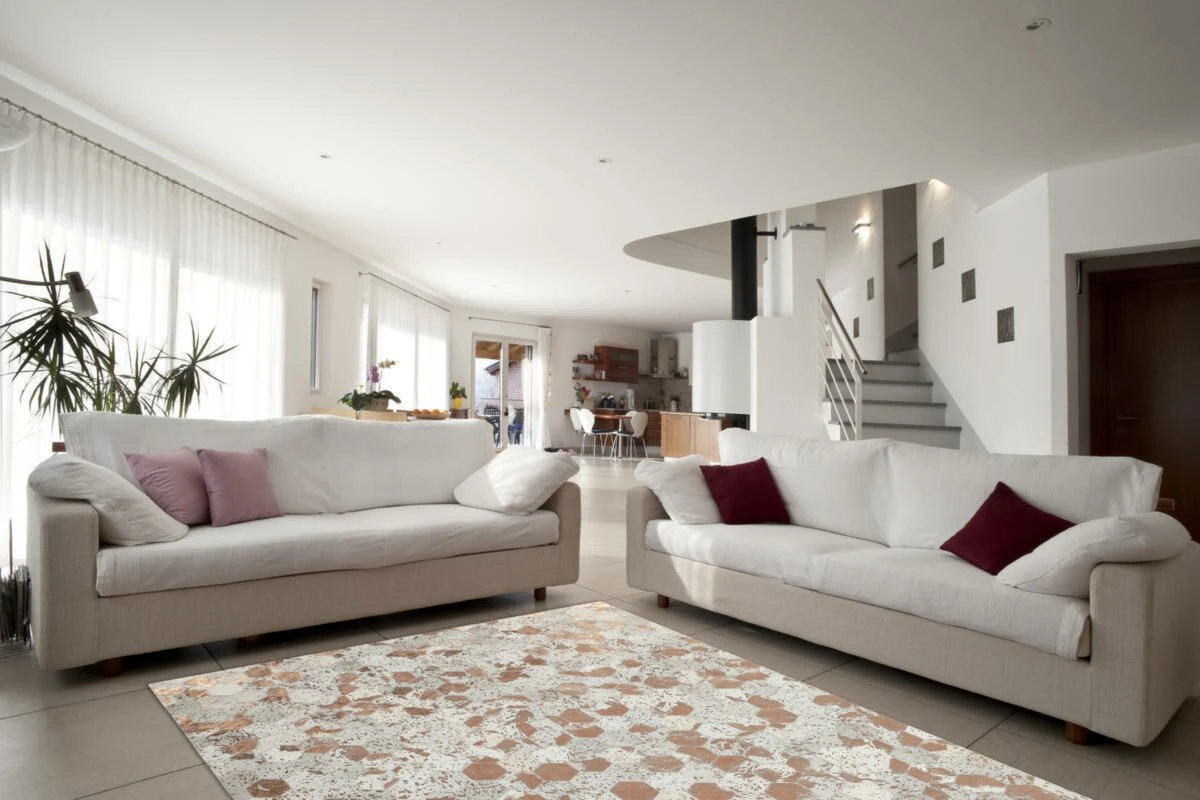 Der wunderschöne Lederteppich mit eingearbeiteten Applikationen aus metallischer Folie rundet jeden edlen Einrichtungsstil gekonnt ab. Der hochwertige Edel-Teppich aus 100 % Leder überträgt einen individuellen Touch auf seine Umgebung und erzeugt ein ganz besonderes Flair. Von Hand gefertigt ist jeder einzelne Lederteppich ein Unikat und die Verwendung von edlen Naturmaterialien trägt auch ihren Teil dazu bei, denn bei Naturprodukten kann es in Form, Farbe und Muster zu Abweichungen kommen.Gegebenenfalls kann das natürliche Fell nach einiger Zeit und bei hoher Beanspruchung an Haaren verlieren. Ebenso könnte sich die Metallicfolie unter Umständen ablösen. Dies ist dem Naturprodukt und der Beschaffenheit des Fells geschuldet und kein Produktionsfehler oder Qualitätsmangel. Er eignet sich für alle Räumlichkeiten und das moderne Rautenmuster verleiht dem Produkt eine ganz besondere Note, außerdem kommt er in Kombination mit verschiedenen Möbeln gut zur Geltung. Naturfaser-Teppiche fangen Fusselwolken ein und sind daher besonders gut für Allergiker geeignet, da sie gleich abgesaugt werden können. Der extra bequeme Lederteppich ist ein Alleskönner, der in jedem Bereich punktet. Des Weiteren ist der Teppich sehr pflegeleicht und wärmeisolierend um kalte Füße zu bekämpfen. Verleihen Sie Ihren Räumen das gewisse Etwas und schaffen Sie Ihre eigene Relax-Insel in verschiedenen Nuancen. Selbst die kleinste Wohnung lässt sich mit diesem wundervollen Naturteppich persönlich einrichten, denn er ist in verschiedenen Größen erhältlich.