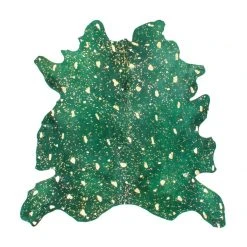 Dieser Naturteppich wurde aus echtem Rindsleder gefertigt und erhält seinen besonderen Charakter durch die moderne Einfärbung, edle metallische Akzente, stilvolle Ausstanzungen sowie die natürliche Form. In schlichten, minimalistisch eingerichteten Räumen kommt dieser Teppich besonders gut zur Geltung. Durch das leichte Gewicht des flachen Flors kann das Modell nicht nur als Bodenbelag, sondern auch als Wandteppich oder Sitzauflage verwendet werden.Dies lässt viele verschiedene Möglichkeiten für Ihre Raumgestaltung offen. Besonders gut passt das Leder zu anderen natürlichen Materialien wie Holz oder Rattan. Der Gemütlichkeitsfaktor wird durch die Kombination mit schönen Kissen oder Sitzkissen aus Naturmaterialien verstärkt und bringt eine Wohlfühlatmosphäre in den gesamten Raum. Das robuste Rindsleder ist pflegeleicht und lässt sich besonders einfach reinigen. Sie erhalten ein einzigartiges Unikat, das durch das Naturmaterial in Beschaffenheit, Struktur, Form und Farbe abweichen kann. Das natürliche Fell kann nach einiger Zeit und bei hoher Beanspruchung gegebenenfalls an Haaren verlieren. Ebenso könnte sich die Goldfolie unter Umständen ablösen. Dies ist dem Naturprodukt und der Beschaffenheit des Fells geschuldet und kein Produktionsfehler oder Qualitätsmangel.