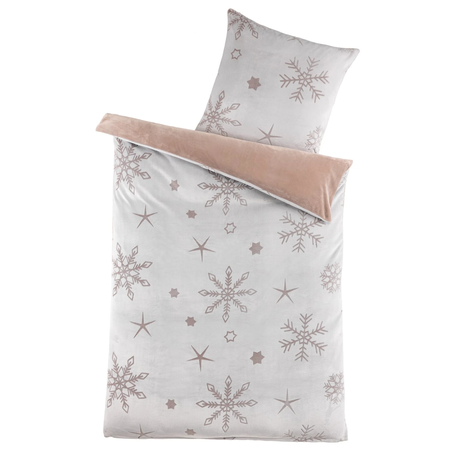 Die 2-teilige Microfaser-Bettwäsche ist mit einem wunderschönen Schneeflocken-Muster verziert und sorgt somit in Ihrem Schlafzimmer für eine winterliche und gemütliche Atmosphäre. Sie lässt sich bei bis zu 40°C waschen und ist für den Trockner geeignet.