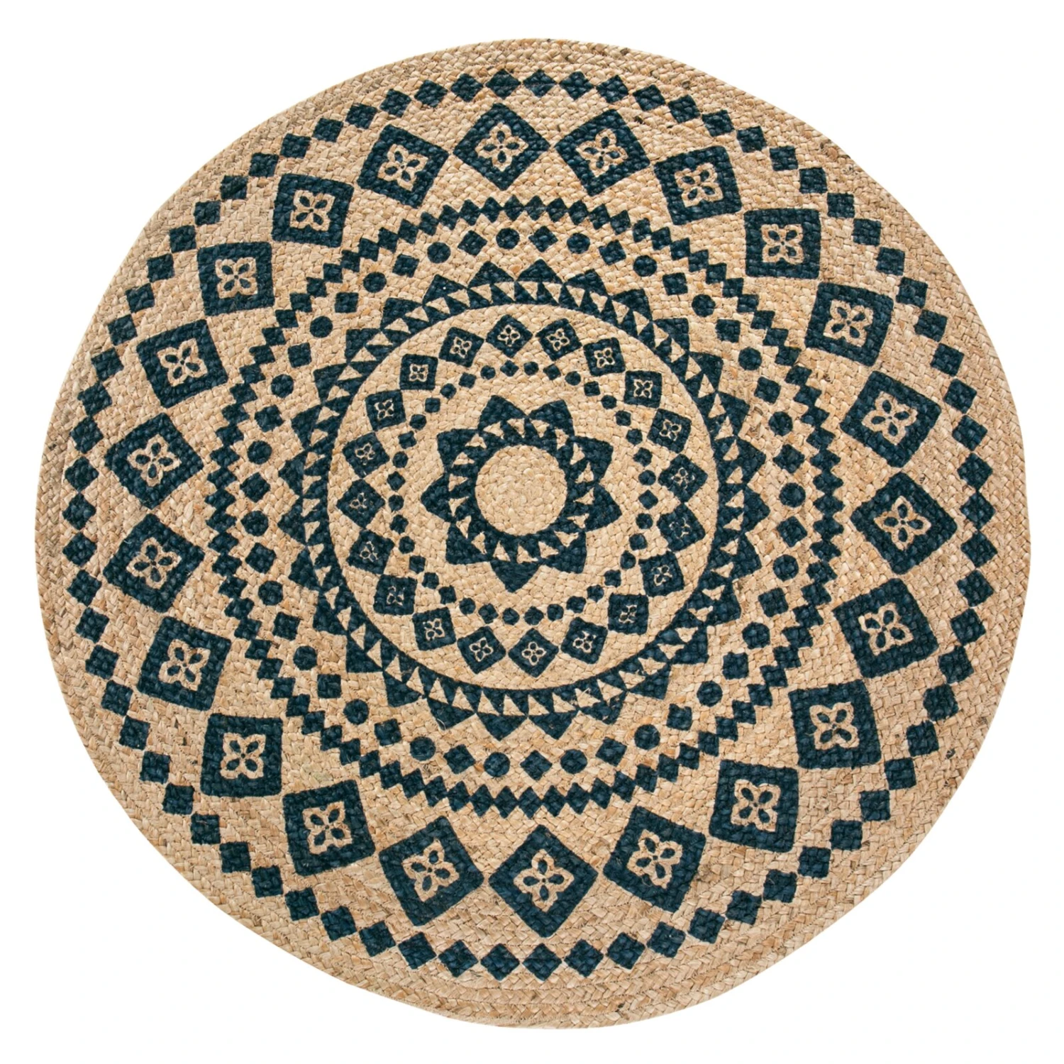 Der runde Jute-Teppich mit seinem Ornament-Muster ist ein schönes, robustes Accessoire für Ihre vier Wände. Mit seinem natürlichen Material sorgt er für eine auffällige Optik. Außerdem überzeugt er auch als nachhaltiges Produkt, denn Jute ist langlebig, biologisch abbaubar und wächst einfach nach.