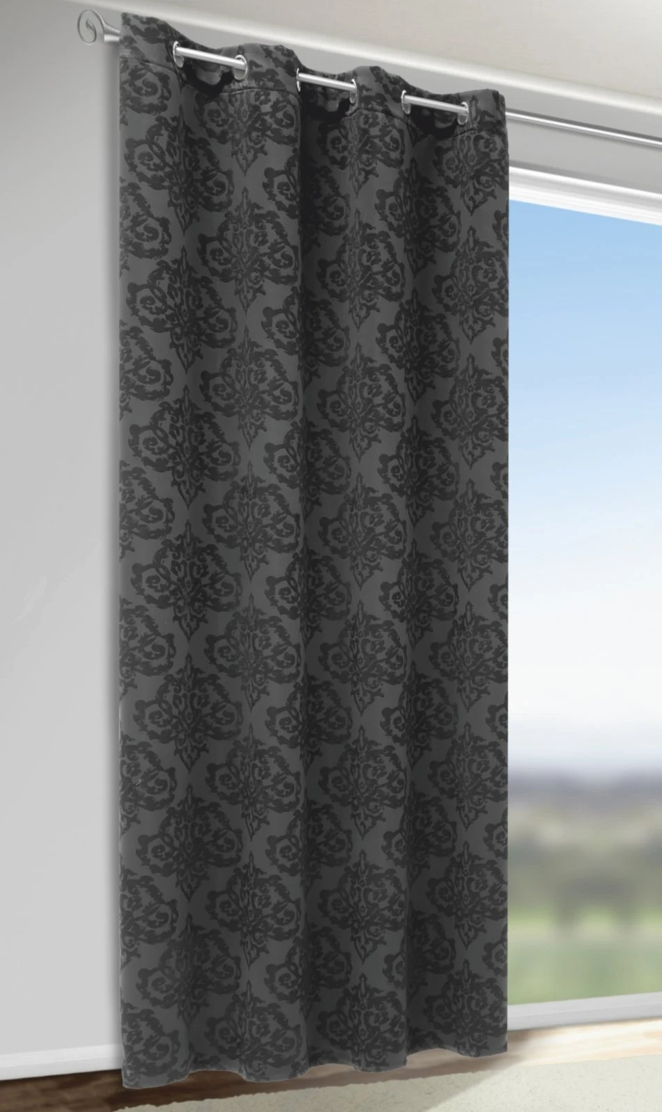 - Der Ösenschal in Grau-Schwarz bietet einen eleganten und modernen Look für Ihr Zuhause. Mit einer Größe von 135×245 cm eignet er sich ideal für große Fenster.