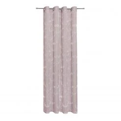 Wunderschöner Ösenschal aus Polyester in Rosa und mit weißem Blumenmuster. Dieser Vorhang ist dank des Materials leicht zu pflegen und wird mit seinem Design zu einem tollen Blickfang.