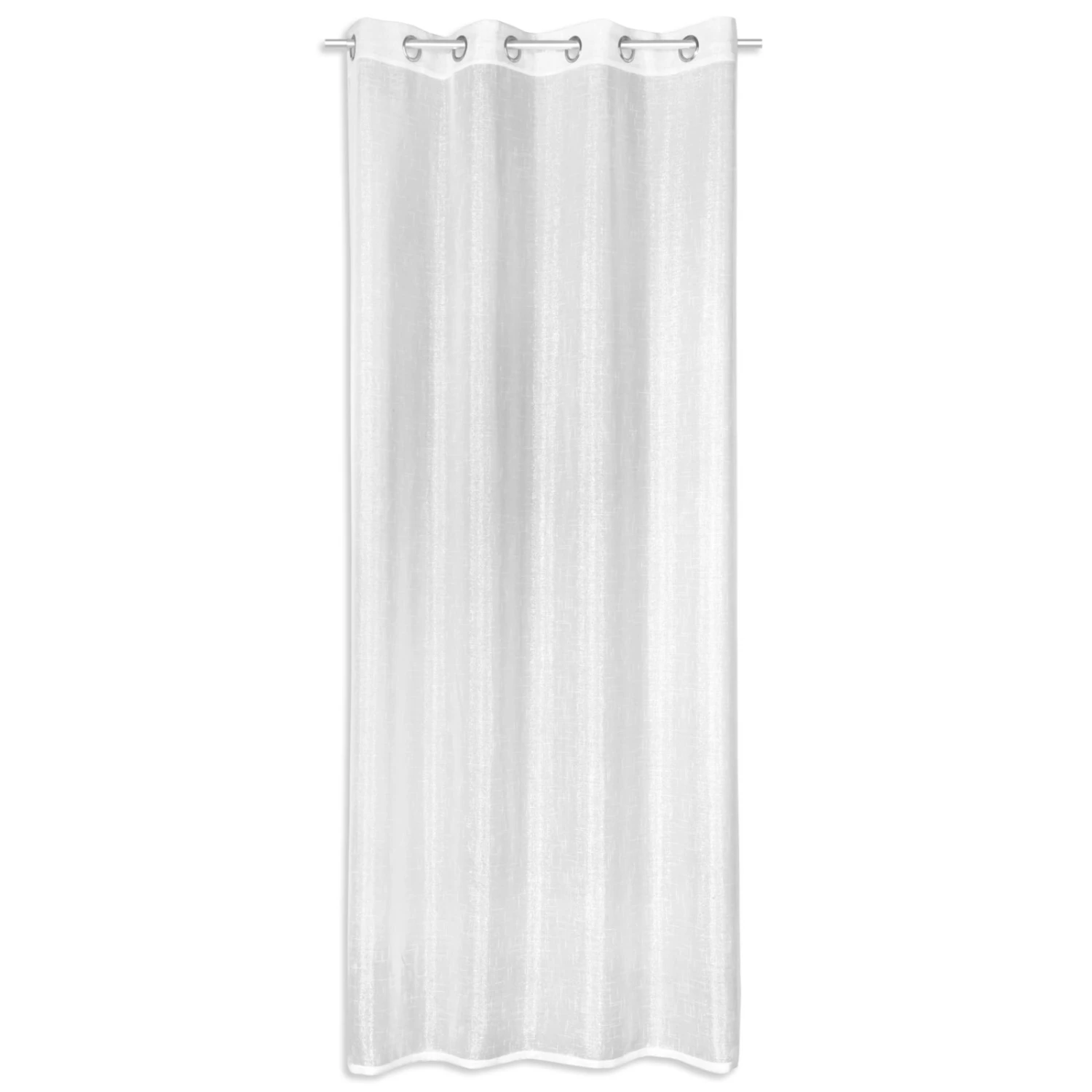 Edel und klassisch ist der Ösenschal in Weiß. Mit seinen Metallösen ist er einfach auf Ihrer Gardinenstange aufzufädeln und direkt Einsatzbereit. Der Webstore schimmert durch die eingewobenen Metallfäden leicht im Licht und wird am Fenster oder der Balkontür wunderschön aussehen.