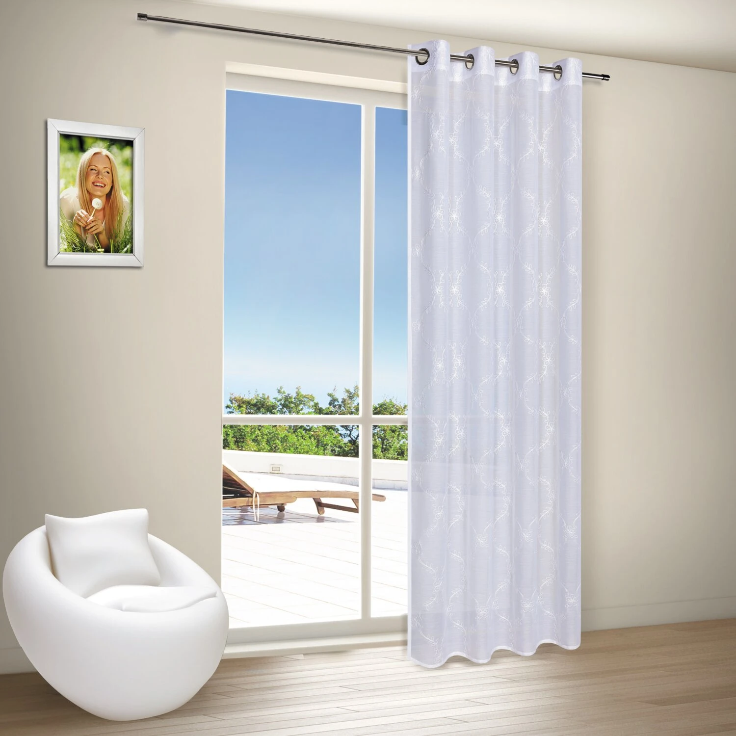 - Der Ösenschal in Weiß mit den Maßen 140×245 cm verleiht Ihrem Zuhause eine elegante und luftige Atmosphäre. Die transparente Gardine lässt natürliches Licht einfluten, während sie dennoch einen Hauch von Privatsphäre bietet.