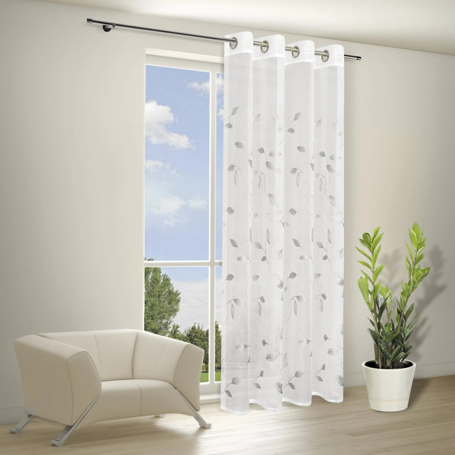 - Elegante Transparenz: Der Ösenschal in Weiß-Silber mit Blattranken-Muster verleiht Ihrem Zuhause eine stilvolle Note.
