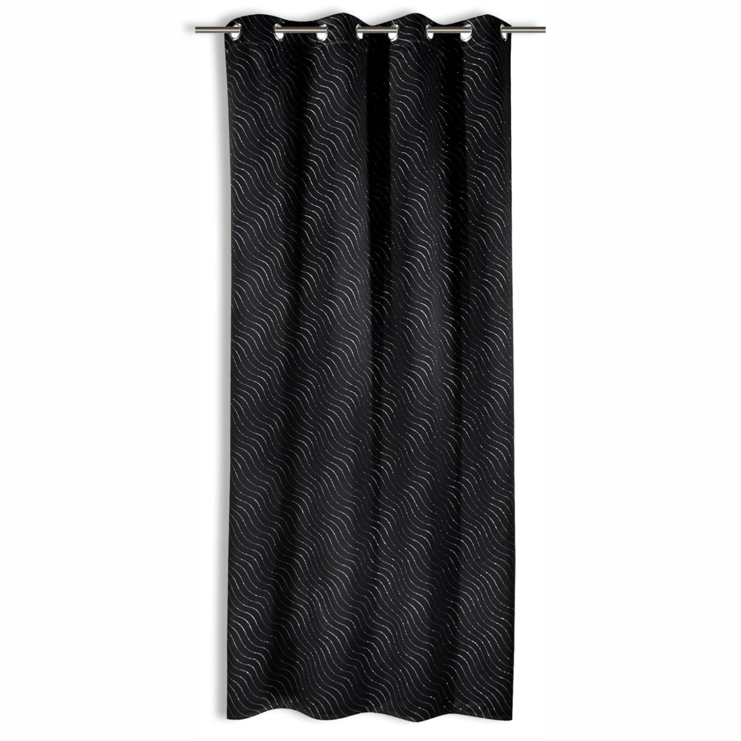 Verschönern Sie Ihre Wohnräume mit diesem tollen schwarzen Ösenvorhang. Er besitzt ein schlichtes und modernes Wellenmuster. Der Vorhang ist super für das Schlafzimmer geeignet, da er blickdicht ist. Die Aufhängung erfolgt ganz einfach mittels 8 Metallösen.