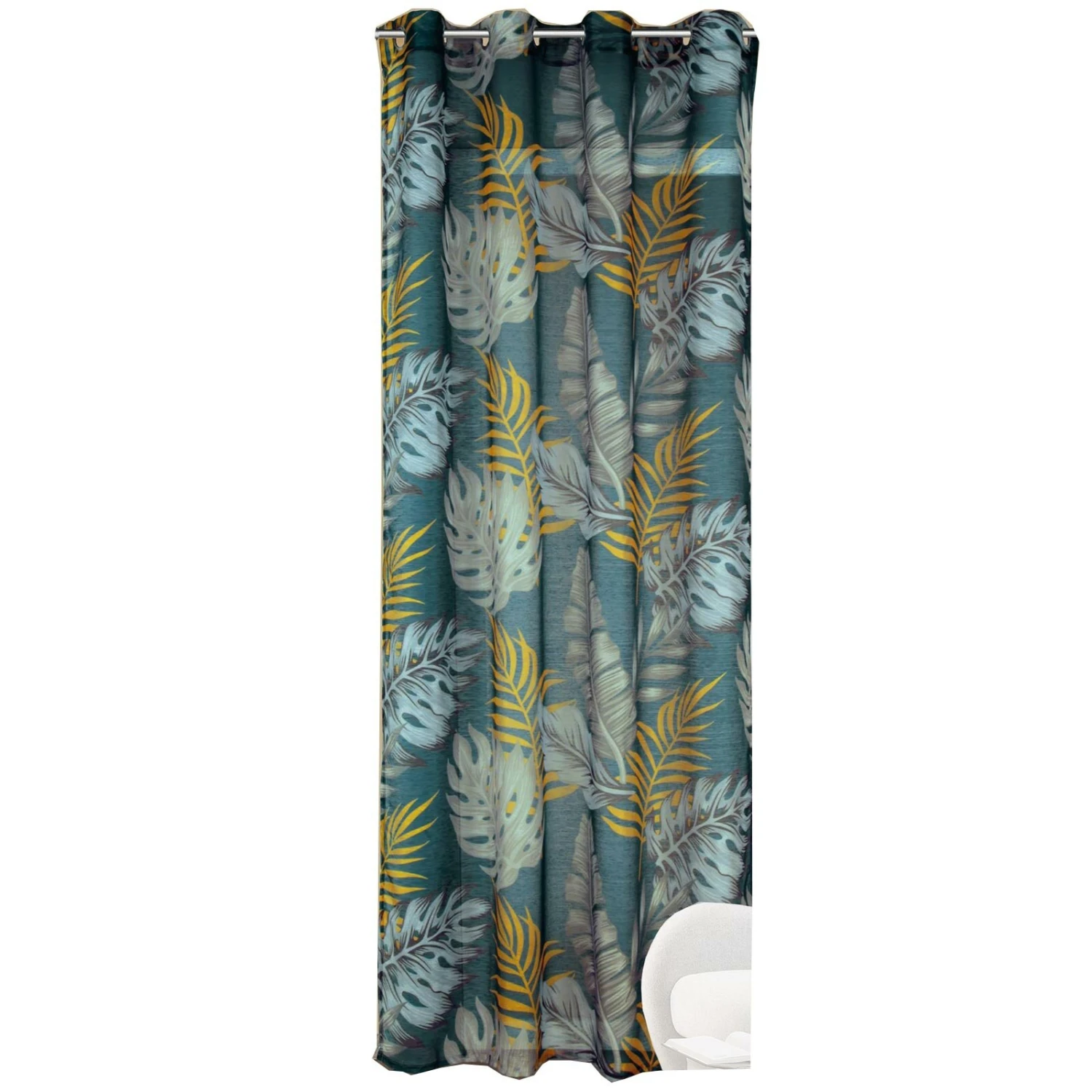 Schicker Ösenschal in Petrol mit Blattmotiv. Der Ösenschal besteht aus 100% Polyester und ist halbtransparent. Er stellt einen echten Hingucker dar und wird Ihre Wohnräume modisch in Szene setzen.