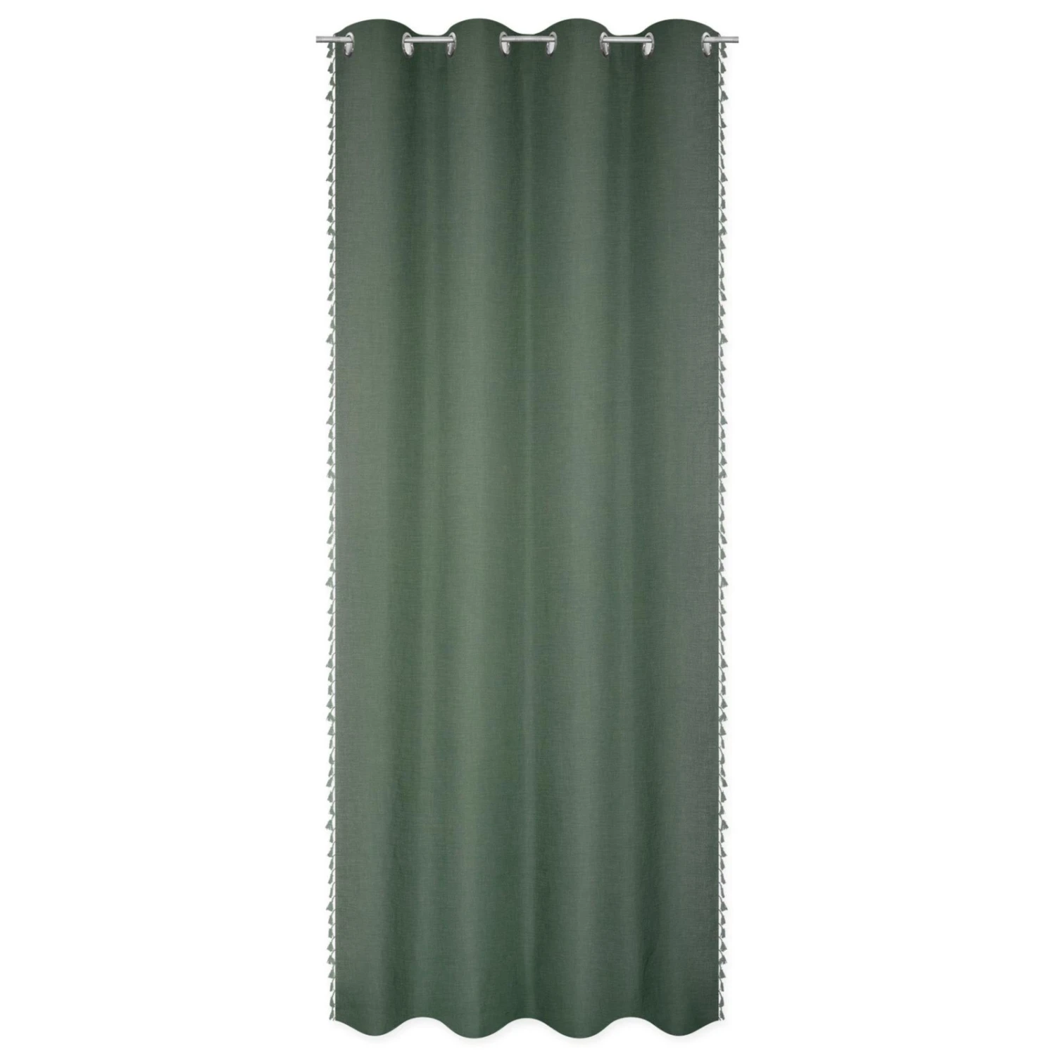 Ösenvorhang – grün – mit Bommel – 140×245 cm