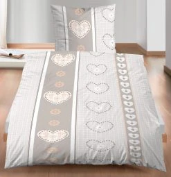 Biber-Bettwäsche – kitt – Herzen – 135×200 cm – Elegant & Gemütlich