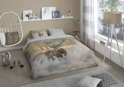 Biber-Bettwäsche Hirsch – mehrfarbig – 135×200 cm – Hochwertige und bequeme Bettwäsche