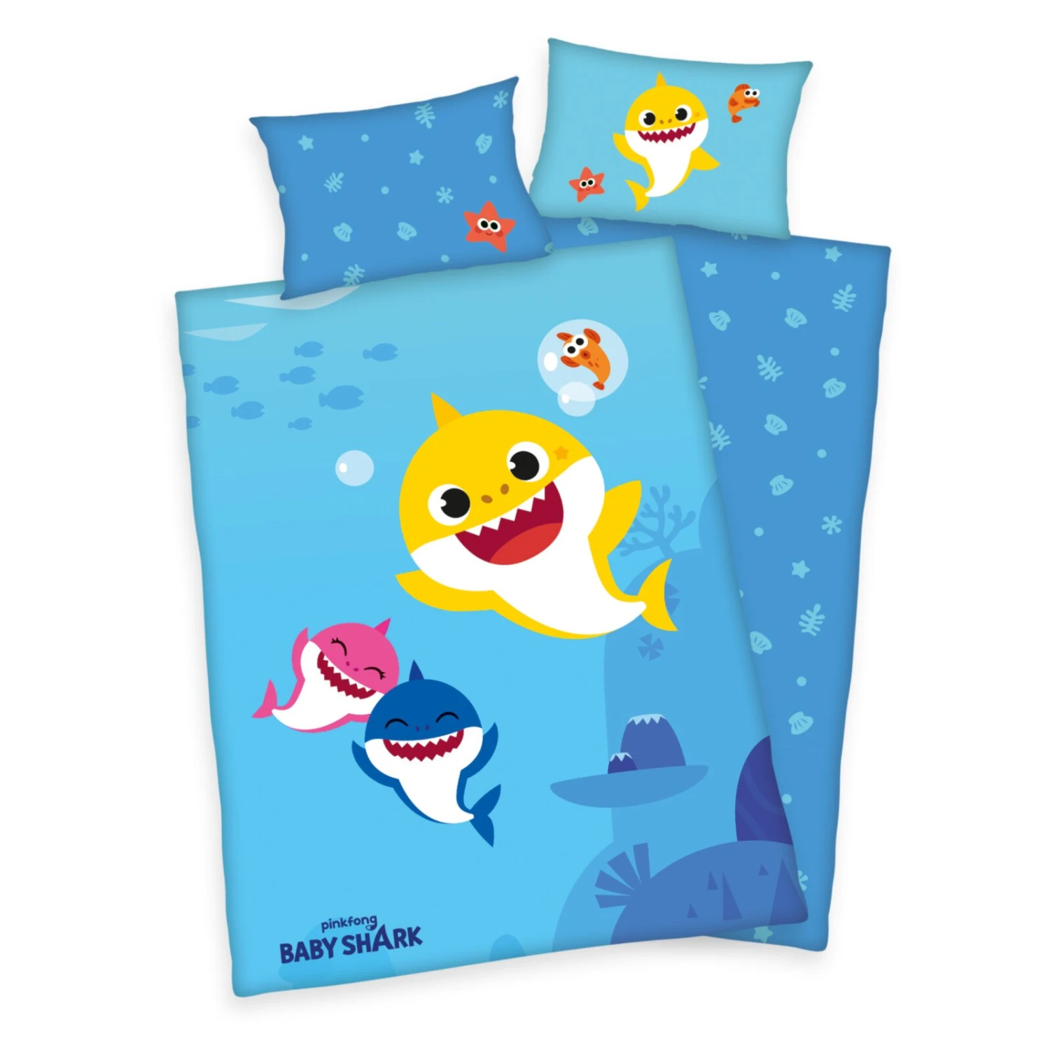 Renforcé-Baby-Bettwäsche Baby Shark – bunt – 100×135 cm