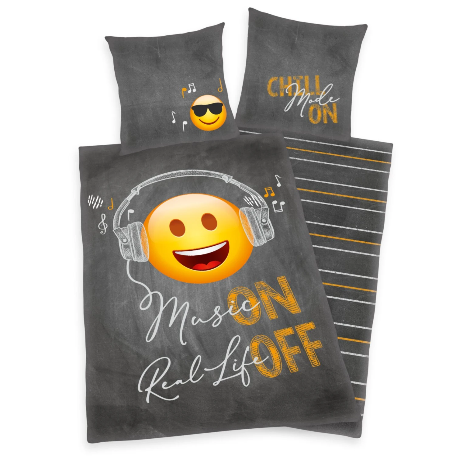 Diese Renforcé-Bettwäsche mit schickem Wendemotiv „Emot!x“ wird Sie begeistern! Mit seiner Baumwoll-Qualität ist sie besonders hautfreundlich und sorgt so für ein wohliges Schlafklima. Das zweiteilige Set besteht aus einem Kissenbezug mit den Maßen 80 x 80 Zentimetern und aus einem Deckenbezug mit Maßen von etwa 155 x 220 Zentimetern. An beiden Bezügen befinden sich Reißveschlüsse zum einfachen Be- und Abziehen.