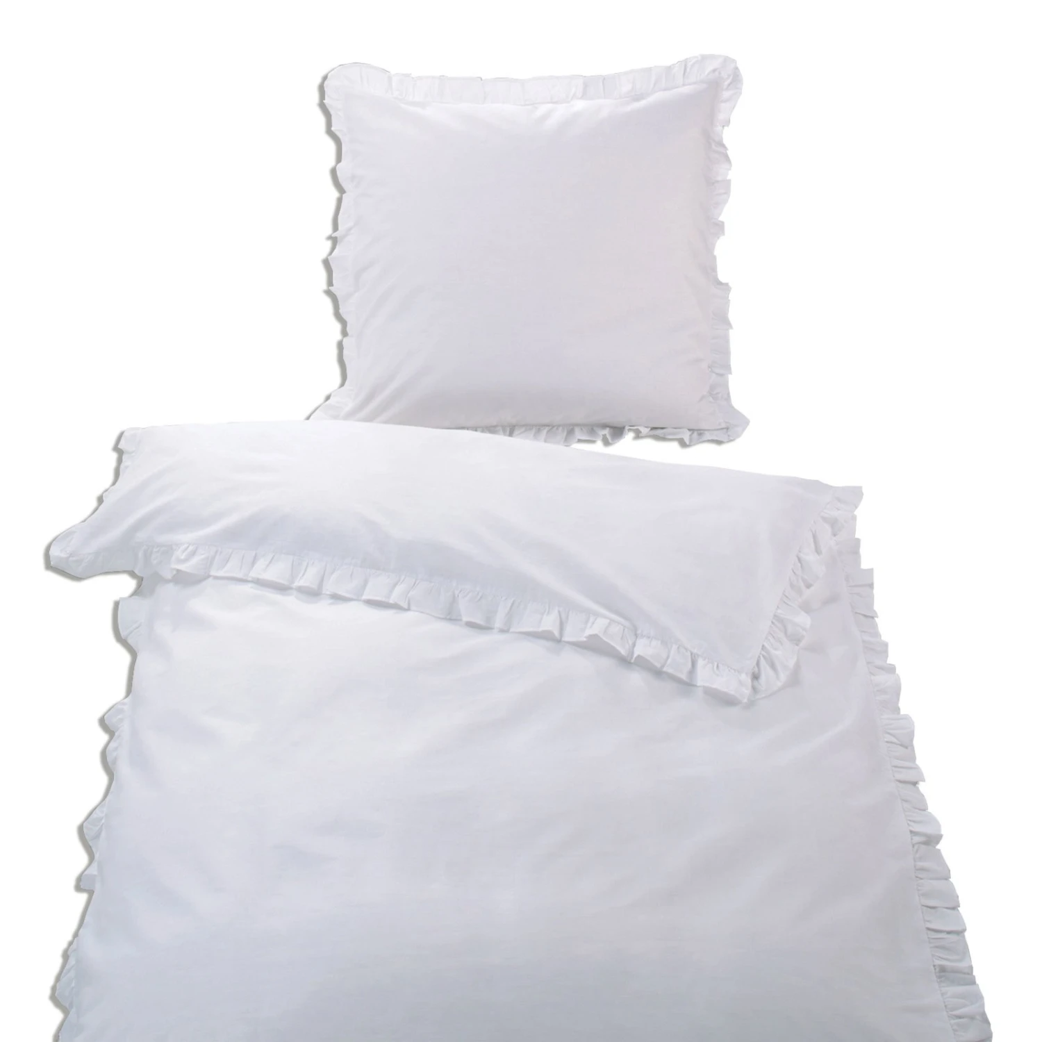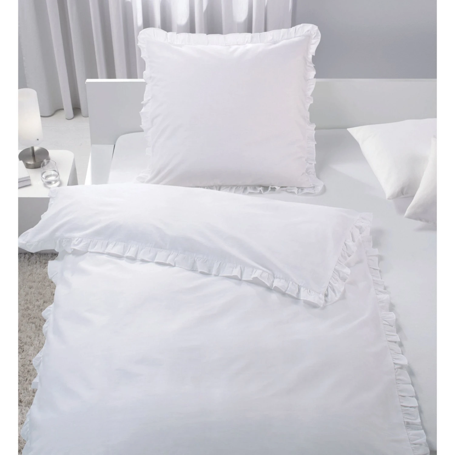 Renforcé-Bettwäsche – weiß – mit Rüschen – 155×220 cm