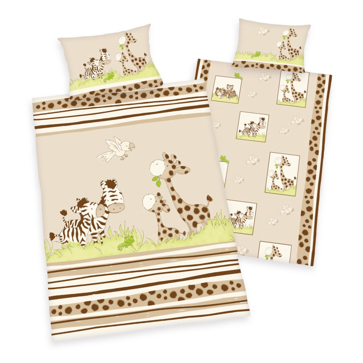 Diese niedliche Renforcé-Bettwäsche in der Farbe Braun ist ein toller Akzent in jedem Kinderzimmer. Die Bettwäsche besteht zu 100% aus kuschelweicher Baumwolle und sorgt mit Ihrem Zebra-Motiv für gute Laune. Das Kissen ist mit einem Hoteleinschlag, der Bettbezug mit einer Knopfleiste ausgestattet. Das Wendemotiv macht die Bettwäsche noch abwechslungsreicher und für die Kleinen noch spannender.
