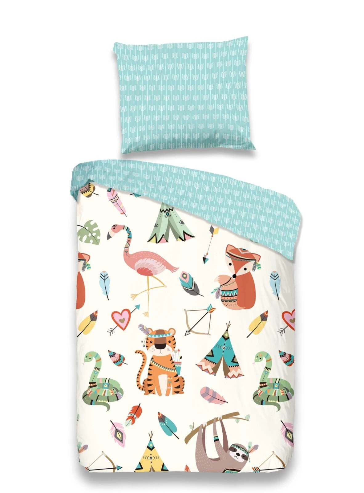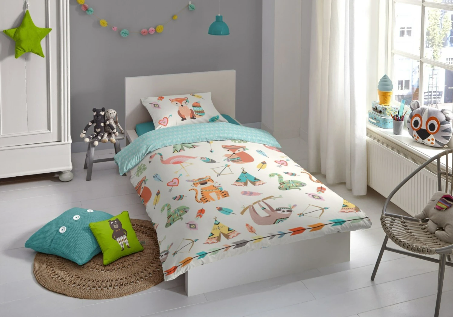 Verzaubern Sie Ihre kleinen Abenteurer doch mal mit dieser tollen Bettwäsche. Das Set besteht aus zwei Teilen. Einem Bettdeckenbezug mit Maßen von etwa 100 x 135 cm und einem Kissenbezug mit den Maßen von etwa 40 x 60 cm. Beide Bezüge sind mit Reißverschlüssen ausgestattet, diese erleichtern die Handhabung beim Be- und Abziehen ungemein. Außerdem sind die Bezüge zu 100% aus Baumwolle in Renforce-Qualität. Eine Bettwäsche die besonders gut für den Sommer geeignet ist, da sie atmungsaktiv und feuchtigkeitsregulierend ist. Zur Reinigung können Sie diese bei etwa 40 Grad im Schonwaschgang waschen.